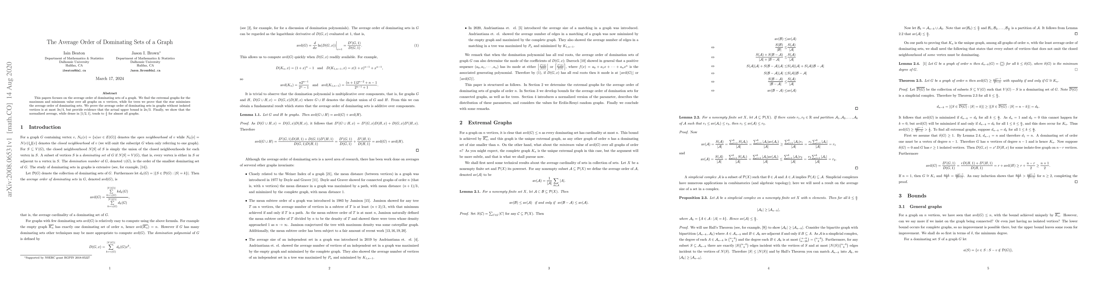 The paper investigates the average order of dominating sets in graphs, finding extremal graphs for maximum and minimum values, proving a star tree minimizes this value in trees, and establishing an upper bound of $2n/3$ on non-isolated graphs.
