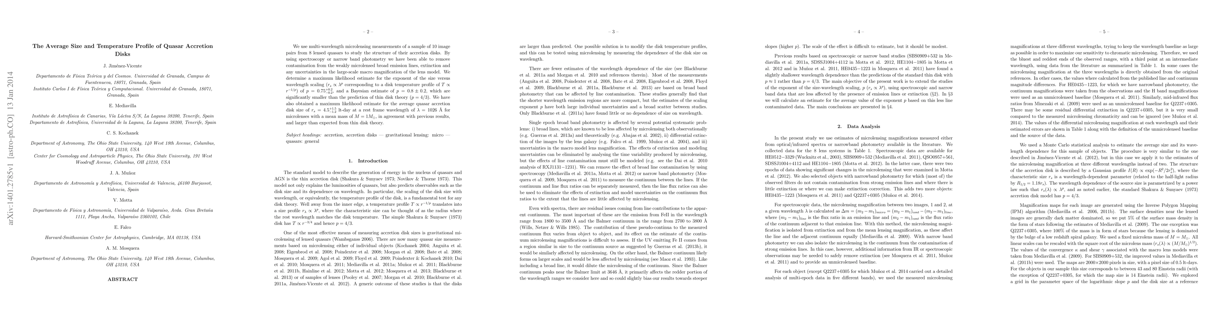 Researchers study quasar accretion disks using microlensing measurements and find a smaller disk temperature profile than expected from thin disk theory, with an average disk size of 4.5 light-days.