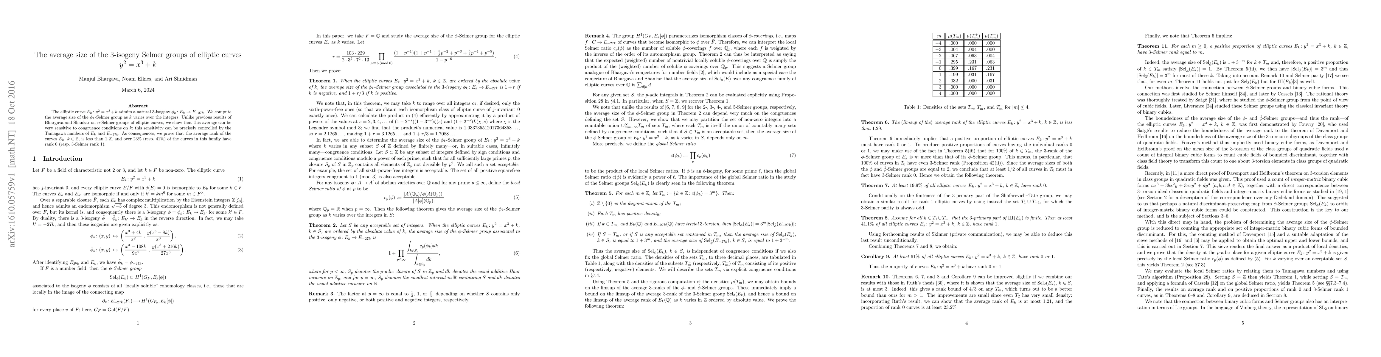 This paper computes the average size of the 3-isogeny Selmer groups for the elliptic curve $E_k \colon y^2 = x^3 + k$, revealing that the average size is sensitive to congruence conditions on $k$ and controlled by the Tamagawa numbers. It also concludes that the average rank of these curves is less than 1.21, with over 23% having rank 0 and 41% having 3-Selmer rank 1.