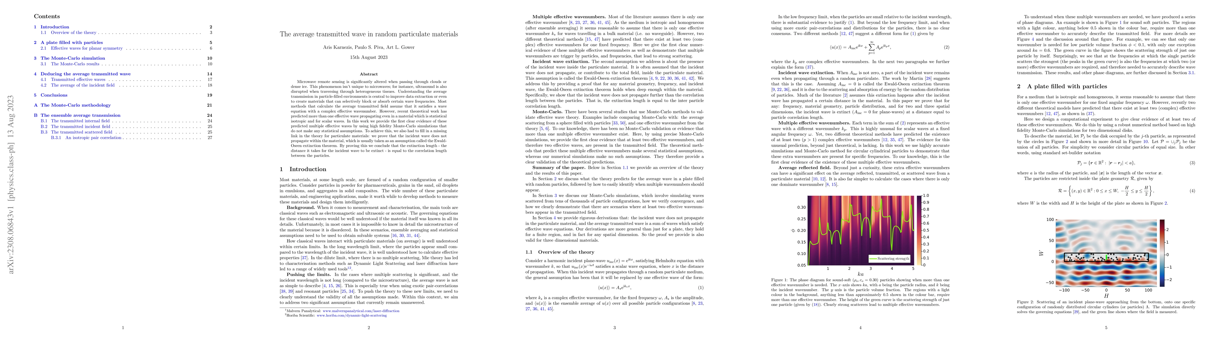 Microwave remote sensing is significantly altered when passing through clouds or dense ice. This phenomenon isn't unique to microwaves; for instance, ultrasound is also disrupted when traversing through heterogeneous tissues. Understanding the average transmission in particle-filled environments is central to improve data extraction or even to create materials that can selectively block or absorb certain wave frequencies. Most methods that calculate the average transmitted field assume that it satisfies a wave equation with a complex effective wavenumber. However, recent theoretical work has predicted more than one effective wave propagating even in a material which is statistical isotropic and for scalar waves. In this work we provide the first clear evidence of these predicted multiple effective waves by using high fidelity Monte-Carlo simulations that do not make any statistical assumptions. To achieve this, we also had to fill in a missing link in the theory for particulate materials: we prove that the incident wave does not propagate within the material, which is usually taken as an assumption called the Ewald-Oseen extinction theorem. By proving this we conclude that the extinction length - the distance it takes for the incident wave to be extinct - is equal to the correlation length between the particles.