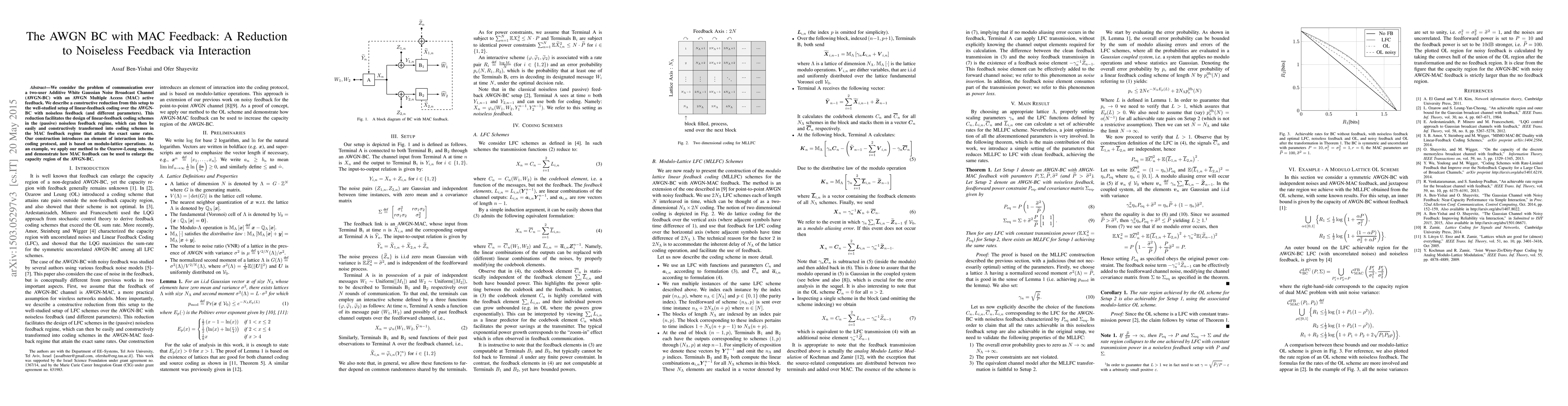 This paper proposes a reduction technique to transform communication over an AWGN Broadcast Channel with MAC feedback into a noiseless feedback scenario, enabling the design of linear-feedback coding schemes. The method introduces interaction via modulo-lattice operations and demonstrates its application to enhance the capacity region of the AWGN-BC.