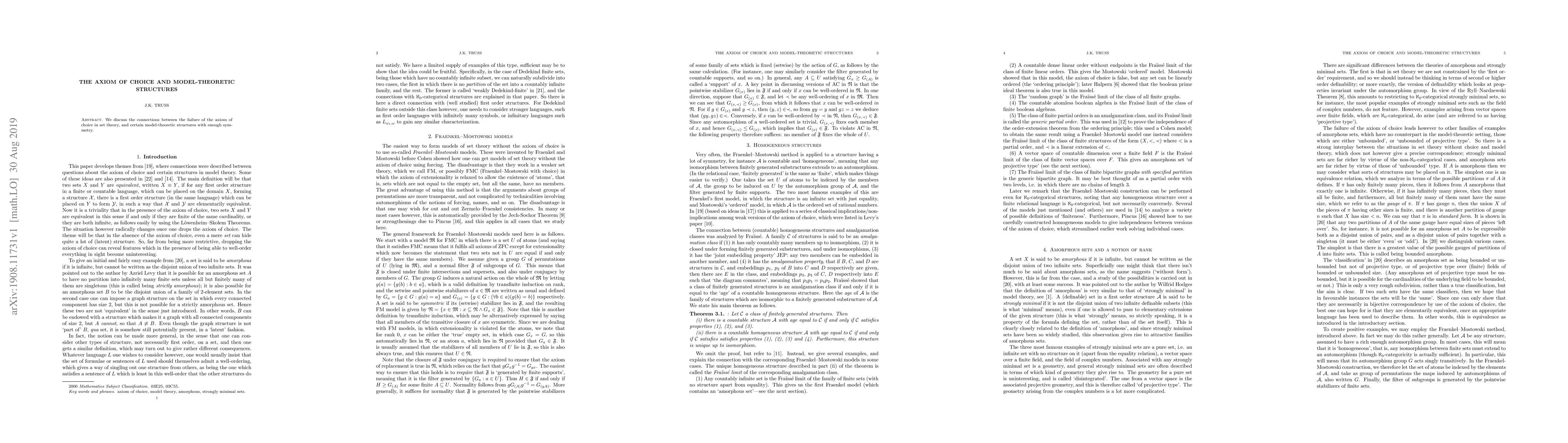 Summary: This paper explores the implications of the axiom of choice's failure in set theory on model-theoretic structures characterized by high symmetry, revealing intricate interdependencies between these mathematical domains.