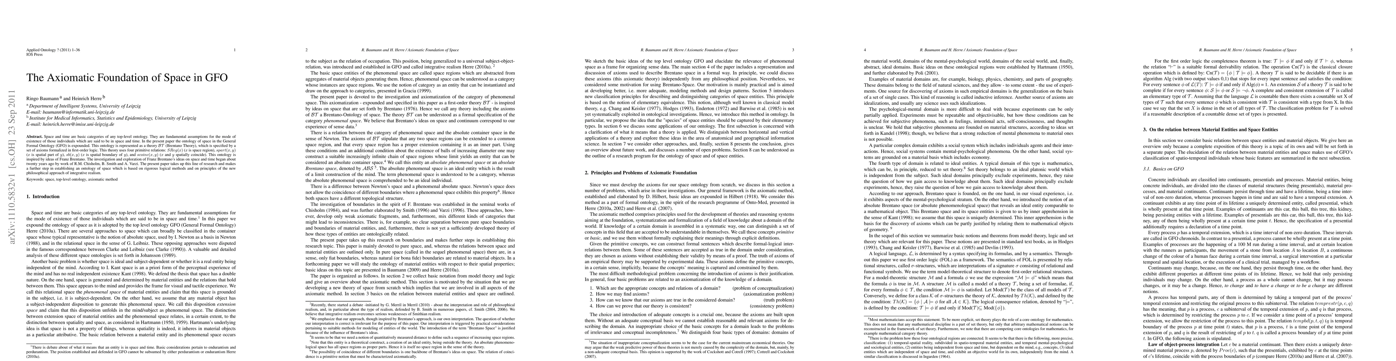 Space and time are basic categories of any top-level ontology. They are fundamental assumptions for the mode of existence of those individuals which are said to be in space and time. In the present paper the ontology of space in the General Formal Ontology (GFO) is expounded. This ontology is represented as a theory BT (Brentano Theory), which is specified by a set of axioms formalized in first-order logic. This theory uses four primitive relations: SReg(x) (x is space region), spart(x, y) (x is spatial part of y), sb(x, y) (x is spatial boundary of y), and scoinc(x, y) (x and y spatially coincide). This ontology is inspired by ideas of Franz Brentano. The investigation and exploration of Franz Brentano's ideas on space and time began about twenty years ago by work of R.M. Chisholm, B. Smith and A. Varzi. The present paper takes up this line of research and makes a further step in establishing an ontology of space which is based on rigorous logical methods and on principles of the new philosophical approach of integrative realism.
