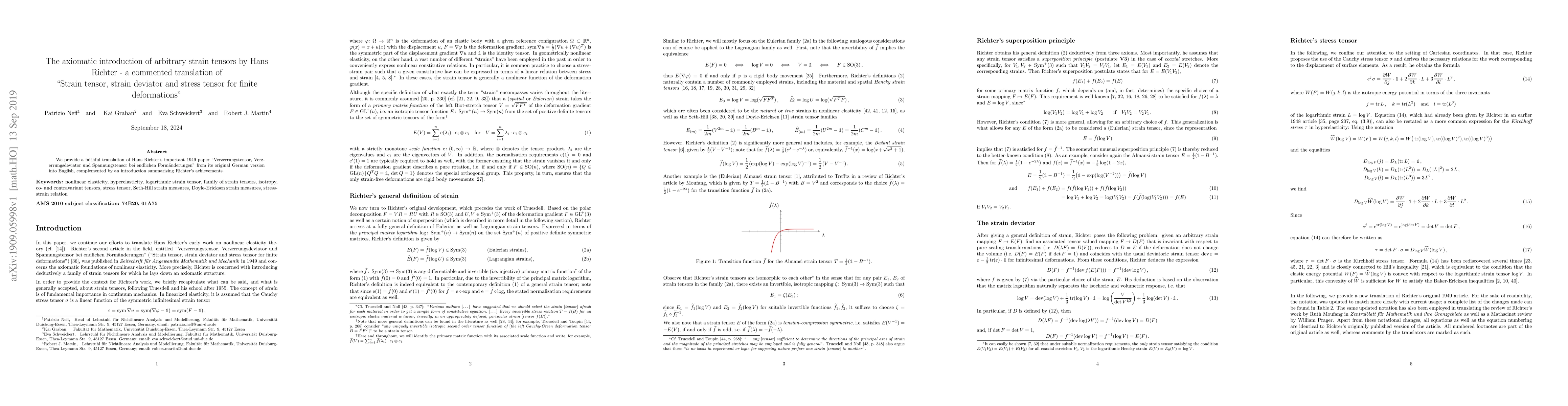 This paper presents a translated and commented version of Hans Richter's 1949 work on strain tensors for finite deformations, offering a faithful English translation of his original German text alongside a summary of his significant contributions to the field.