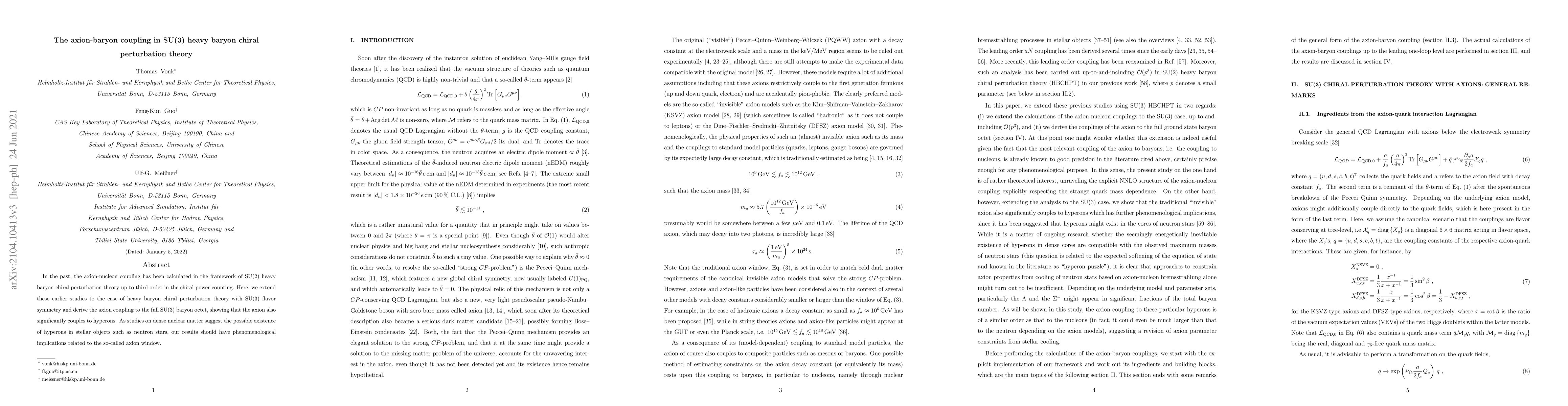 This paper extends the axion-nucleon coupling calculations to SU(3) heavy baryon chiral perturbation theory, revealing significant axion coupling to the full SU(3) baryon octet, including hyperons. These findings have implications for dense nuclear matter in neutron stars and the axion window.
