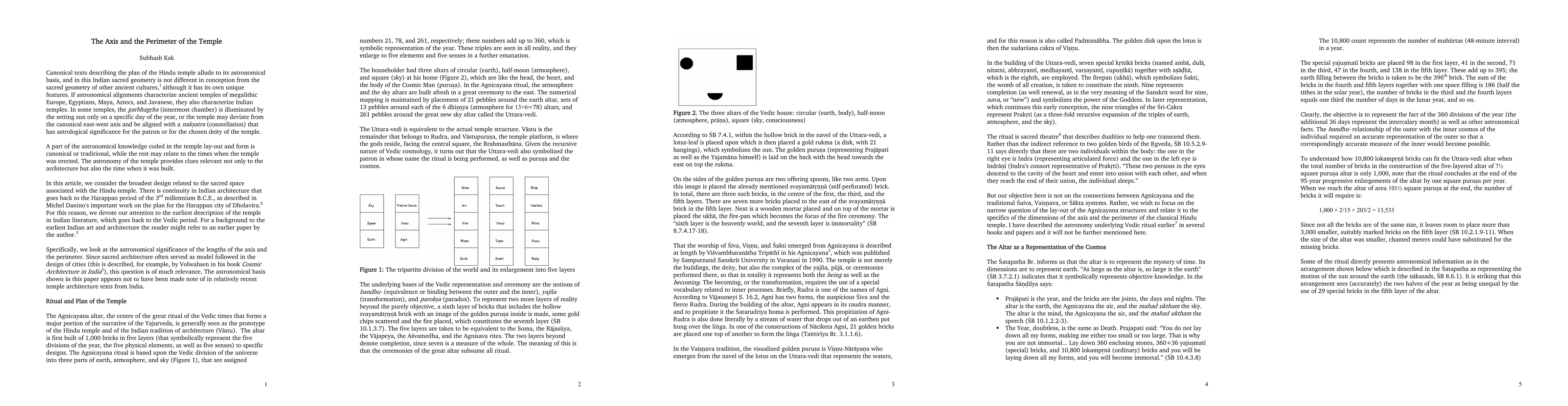 This paper presents textual evidence for an astronomical basis of the dimensions of the axis and perimeter in the plan of the Indian temple.