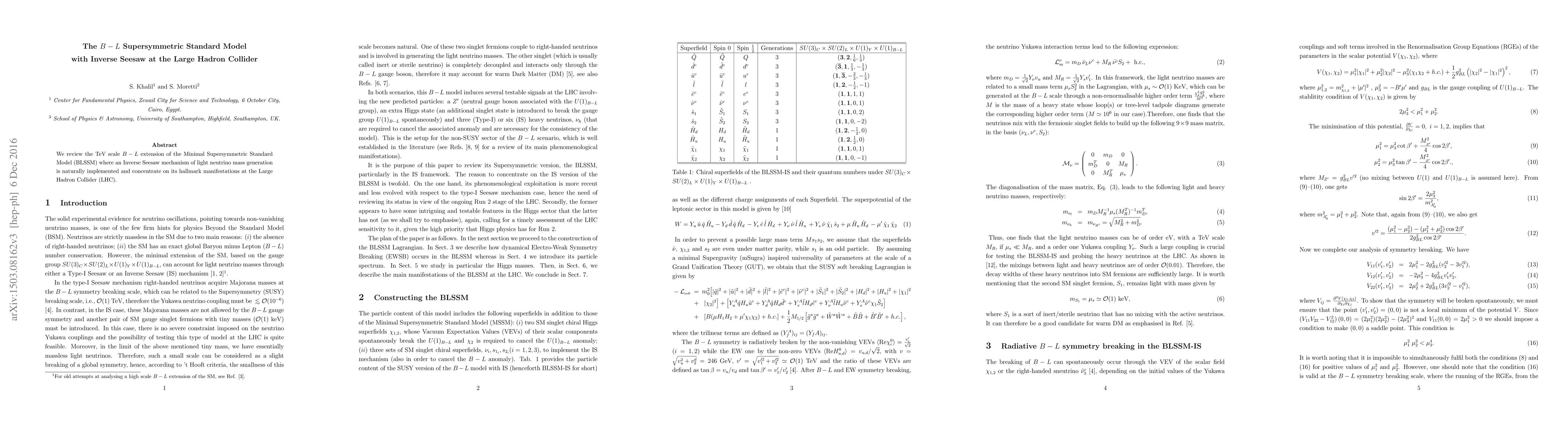 This paper reviews the $B-L$ supersymmetric extension of the Minimal Supersymmetric Standard Model incorporating an inverse seesaw mechanism for light neutrino masses, and focuses on its distinctive signatures at the Large Hadron Collider (LHC).