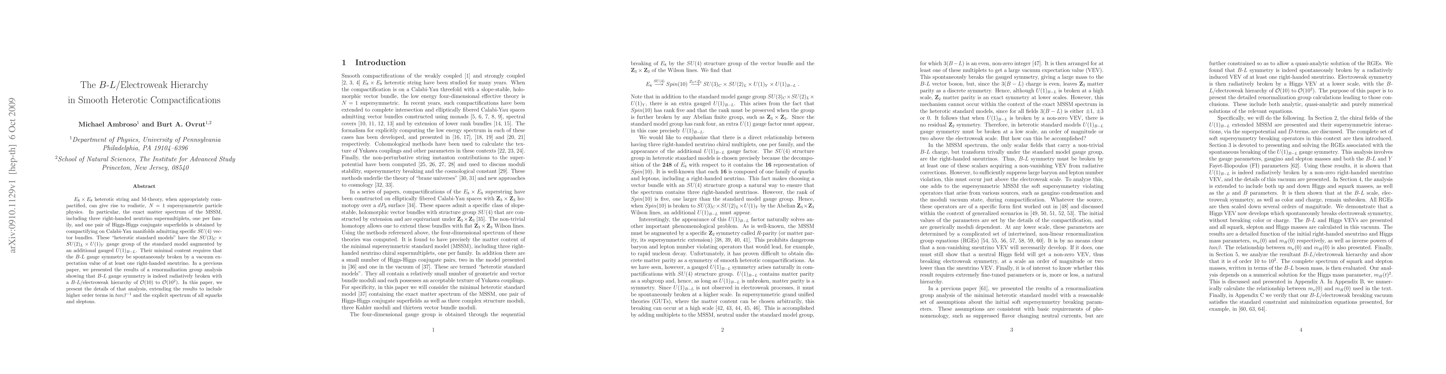 This paper explores the B-L/electroweak hierarchy in smooth heterotic compactifications of E8 X E8 string theory, achieving a realistic MSSM spectrum with an additional U(1)_{B-L} gauge symmetry. It extends the previous analysis to include higher-order terms and provides the explicit spectrum of all squarks and sleptons.