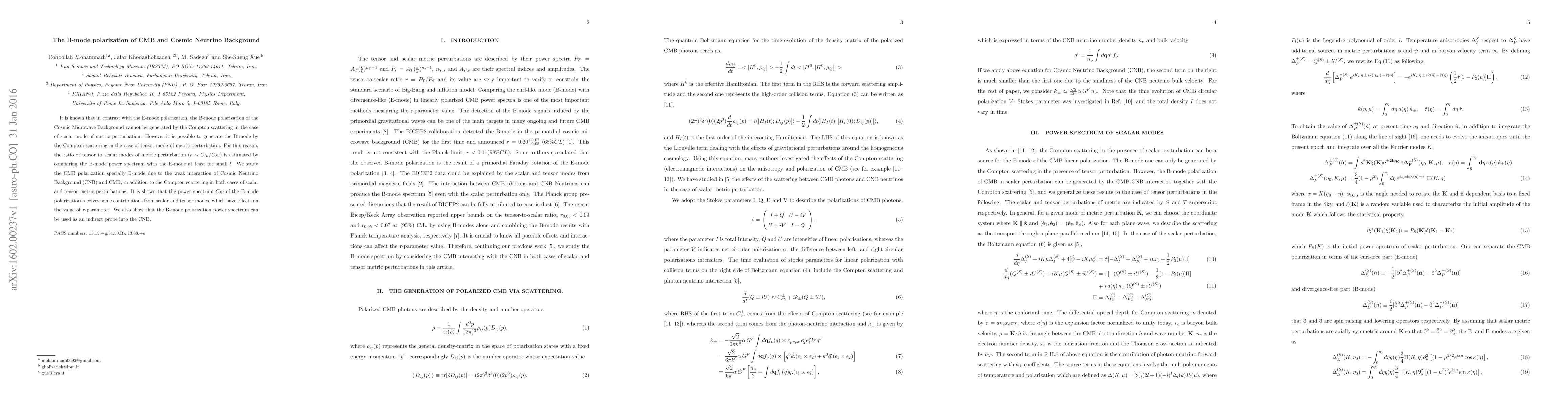 This paper investigates the B-mode polarization of the Cosmic Microwave Background (CMB) and its relation to the Cosmic Neutrino Background (CNB), demonstrating that the B-mode, unlike E-mode, can be influenced by both scalar and tensor metric perturbations. It concludes that the B-mode polarization power spectrum can indirectly probe the CNB and affects the estimation of the tensor-to-scalar ratio.