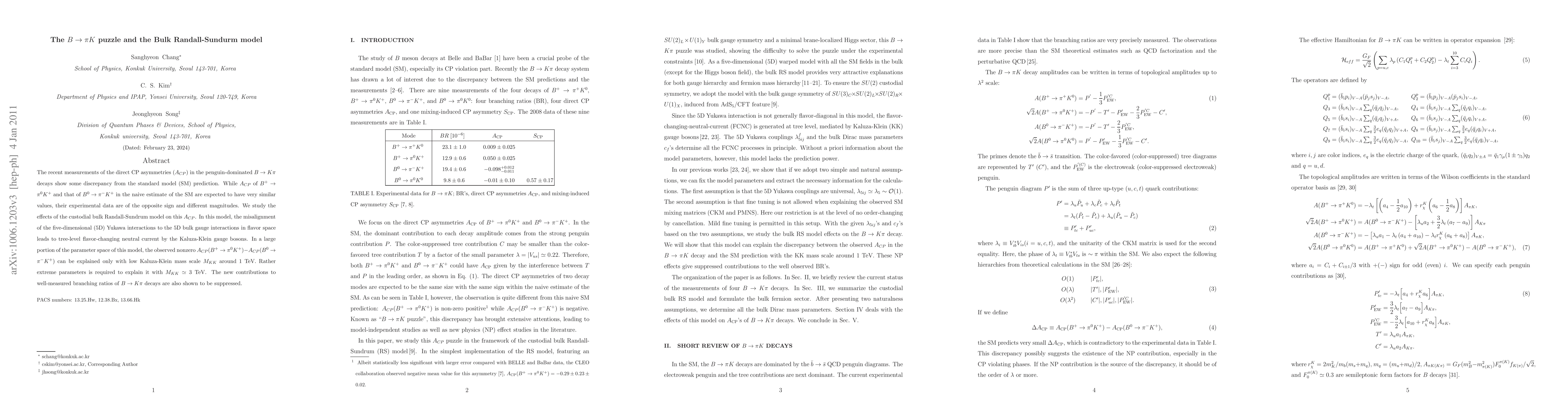 This paper investigates the discrepancy between experimental and standard model predictions in CP asymmetries for $B\to K \pi$ decays, proposing the custodial bulk Randall-Sundrum model as a potential explanation. The model's misalignment of 5D Yukawa and gauge interactions can explain the observed CP asymmetry differences with a low Kaluza-Klein mass scale around 1 TeV.