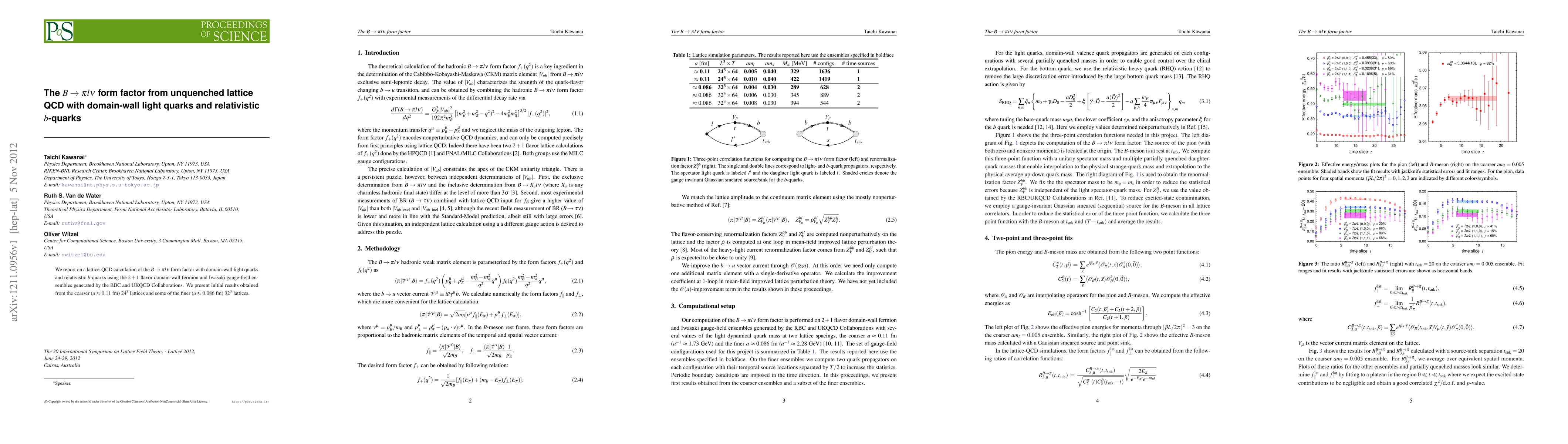We report on a lattice-QCD calculation of the B to pi l nu form factor with domain-wall light quarks and relativistic b-quarks using the 2 + 1 flavor domain-wall fermion and Iwasaki gauge-field ensembles generated by the RBC and UKQCD Collaborations. We present initial results obtained from the coarser (a ~ 0.11 fm) 24^3 lattices and some of the finer (a ~ 0.086 fm) 32^3 lattices.