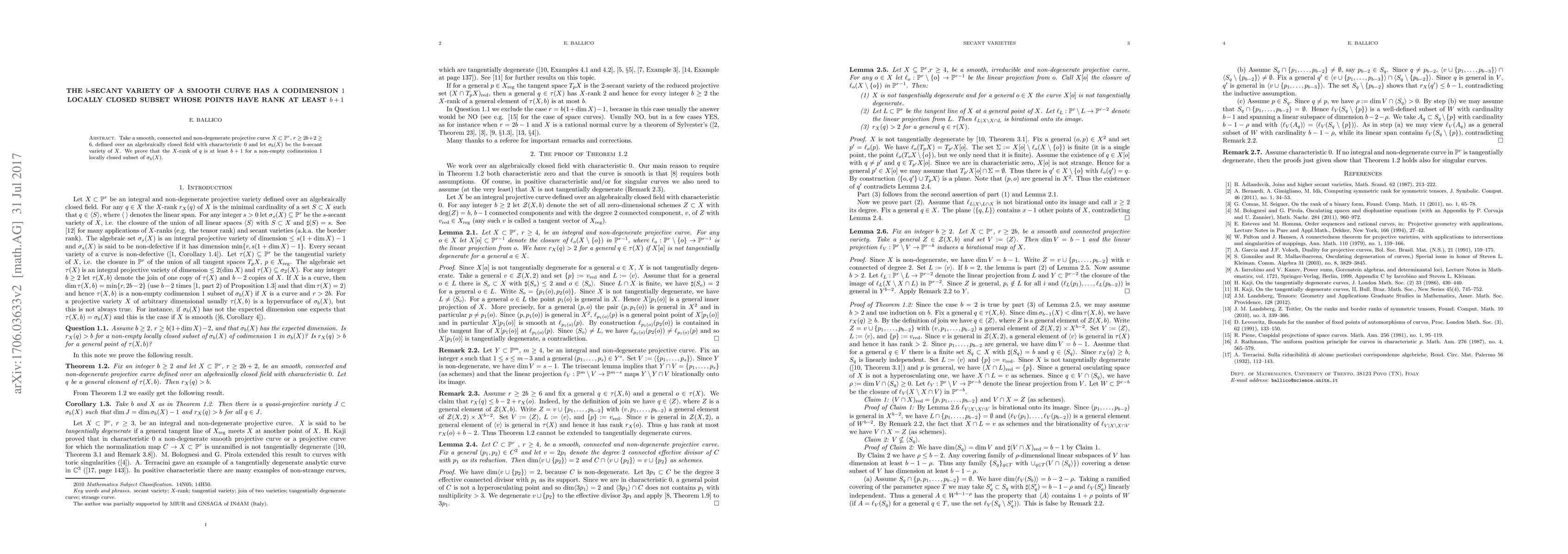 A research paper shows that for a specific curve in projective space, there is a subset of its secant variety with points having rank at least b+1, indicating a local closed set.