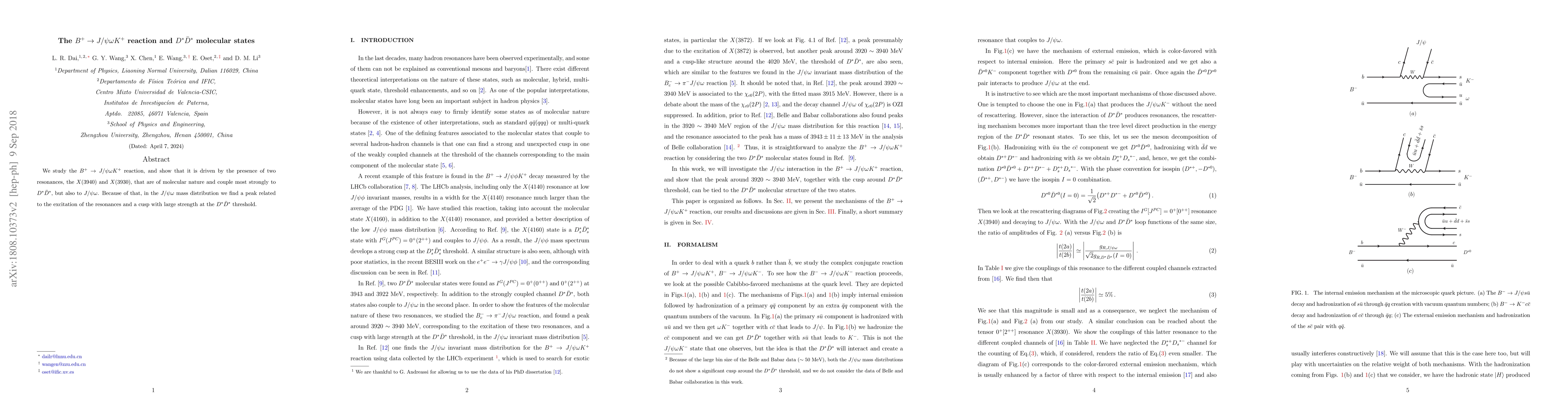 Researchers studied the $B^+ o J/ ho$ reaction and found it is driven by molecular resonances, including the $X(3940)$ and $X(3930)$ states, which couple to both $D^*ar{D}^*$ and $J/ ho$.