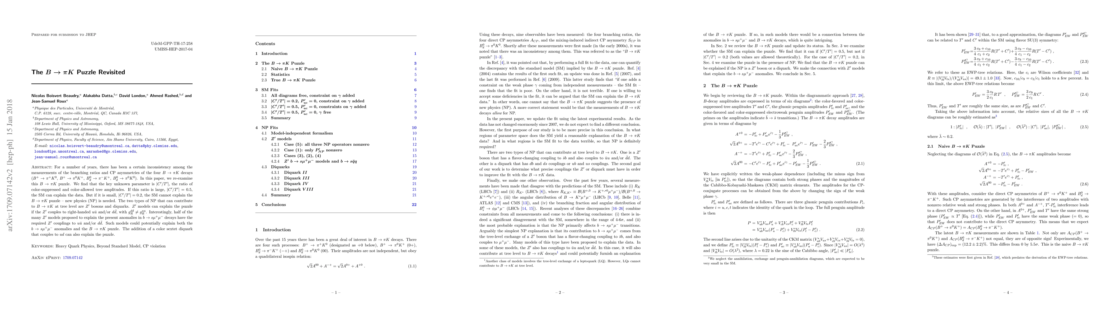 This paper revisits the $B \to \pi K$ puzzle, finding that the ratio of color-suppressed to color-allowed tree amplitudes, $|C'/T'|$, is key to explaining the observed inconsistencies. If $|C'/T'|$ is large, the Standard Model can account for the data, but if it is small, new physics is required, potentially via $Z'$ bosons or diquarks.