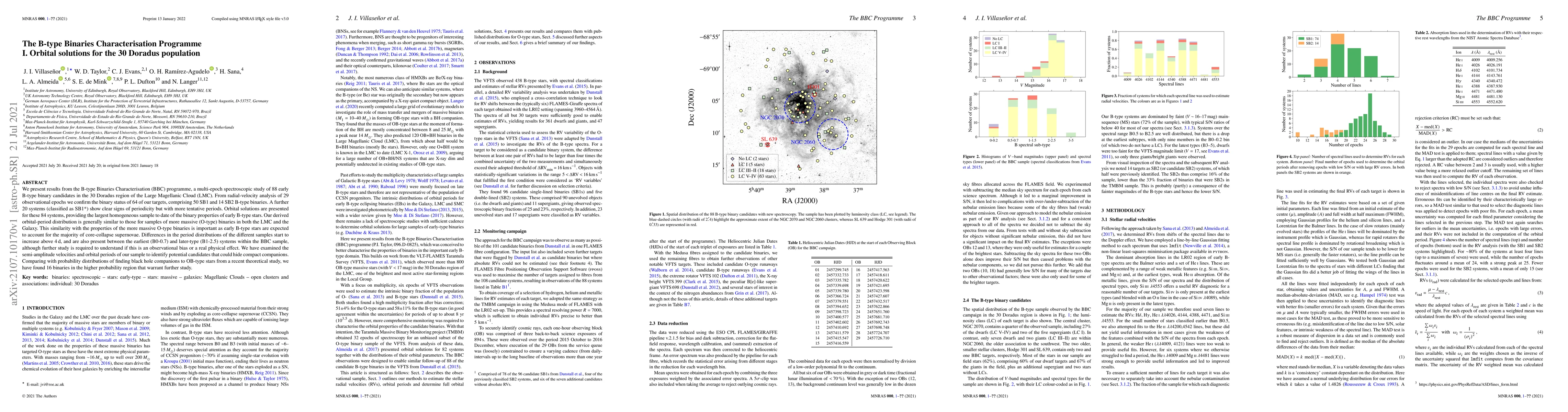 This research from the B-type Binaries Characterisation Programme investigates 88 early B-type binary candidates in the 30 Doradus region of the Large Magellanic Cloud, confirming the binary status of 64 systems through multi-epoch spectroscopic analysis. The study provides orbital solutions for these binaries, highlighting similarities in orbital-period distributions with more massive O-type binaries and identifying potential candidates for compact companions, including black holes.