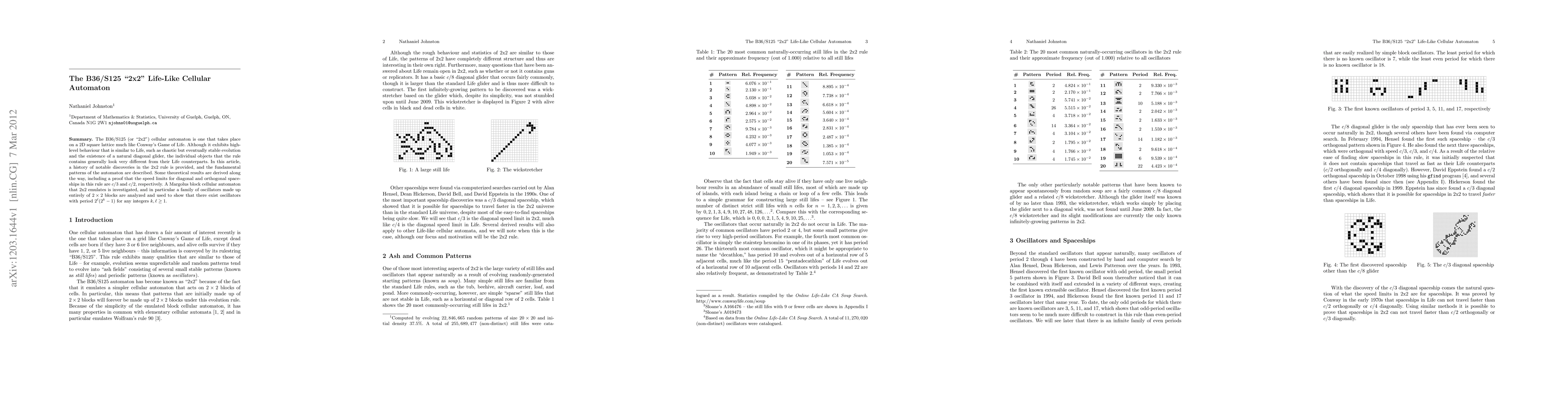 This paper explores the B36/S125 "2x2" cellular automaton, comparing its behavior to Conway's Game of Life while highlighting its unique patterns. It provides theoretical results, including the speed limits of spaceships and the existence of oscillators with periods of 2^m(2^k - 1).