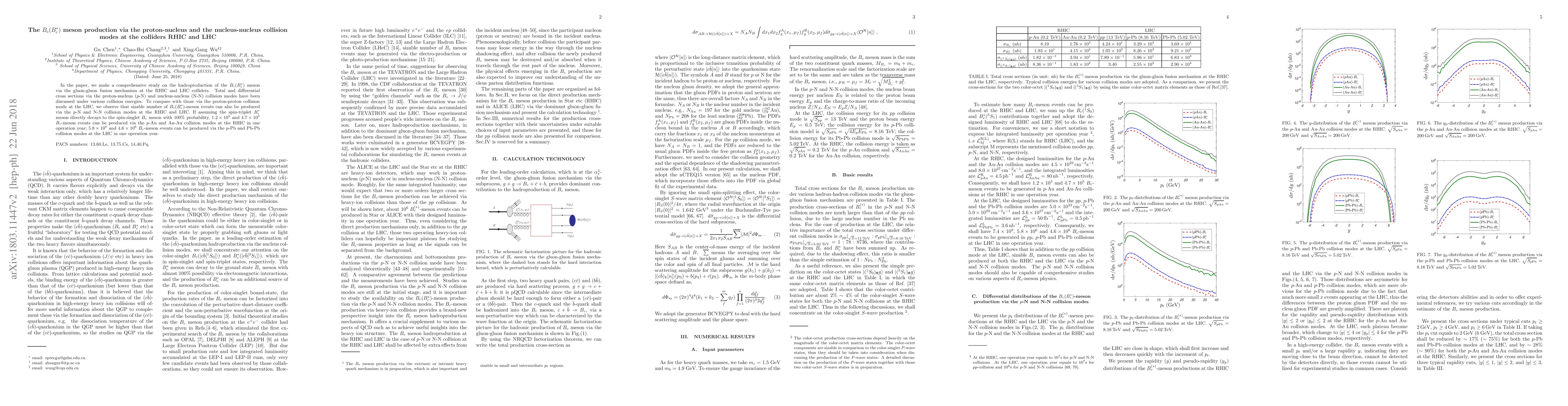 In the paper, we make a comprehensive study on the hadroproduction of the $B_c (B_c^*)$ meson via the gluon-gluon fusion mechanism at the RHIC and LHC colliders. Total and differential cross sections via the proton-nucleus ($p$-N) and nucleus-nucleus (N-N) collision modes have been discussed under various collision energies. To compare with those via the proton-proton collision mode at the LHC, we observe that sizable number of $B_c (B_c^*)$-meson events can also be produced via the $p$-N and N-N collision modes at the RHIC and LHC. If assuming the spin-triplet $B^*_c$ meson directly decays to the spin-singlet $B_c$ meson with $100\%$ probability, $1.2 \times 10^5$ and $4.7 \times 10^5$ $B_c$-meson events can be produced via the $p$-Au and Au-Au collision modes at the RHIC in one operation year; $5.8 \times 10^6$ and $4.6 \times 10^6$ $B_c$-meson events can be produced via the $p$-Pb and Pb-Pb collision modes at the LHC in one operation year.