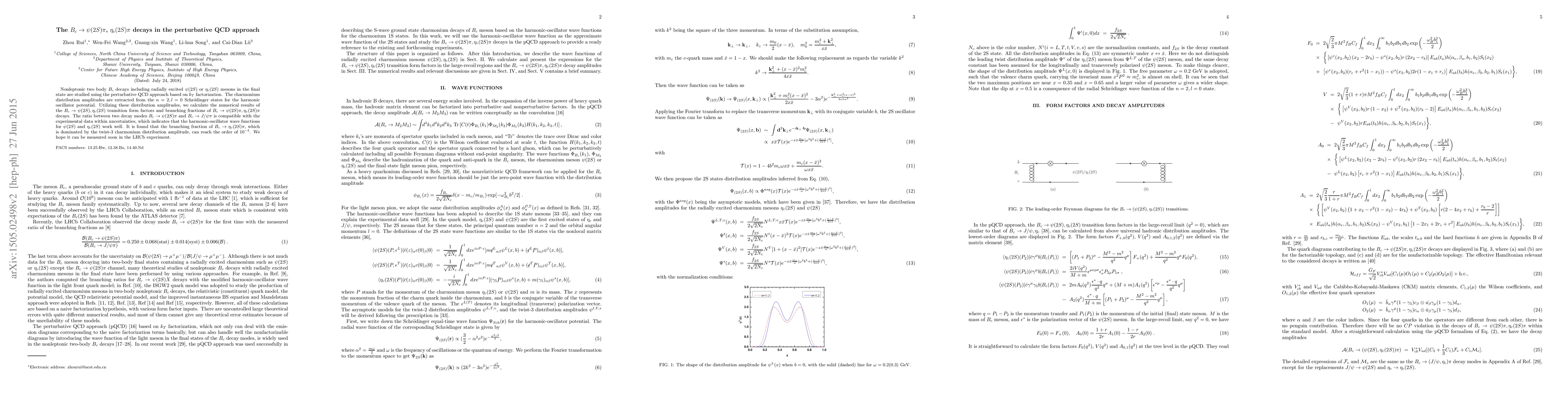 Nonleptonic two body $B_c$ decays including radially excited $\psi(2S)$ or $\eta_c(2S)$ mesons in the final state are studied using the perturbative QCD approach based on $k_T$ factorization. The charmonium distribution amplitudes are extracted from the $n = 2, l = 0$ Schr$\ddot{o}$dinger states for the harmonic oscillator potential. Utilizing these distribution amplitudes, we calculate the numerical results of the $B_c\rightarrow \psi(2S),\eta_c(2S)$ transition form factors and branching fractions of $B_c\rightarrow \psi(2S)\pi, \eta_c(2S)\pi$ decays. The ratio between two decay modes $B_c\rightarrow \psi(2S)\pi$ and $B_c\rightarrow J/\psi\pi$ is compatible with the experimental data within uncertainties, which indicate that the harmonic oscillator wave functions for $\psi(2S)$ and $\eta_c(2S)$ work well. It is found that the branching fraction of $B_c\rightarrow \eta_c(2S)\pi$, which is dominated by the twist-3 charmonium distribution amplitude, can reach the order of $10^{-3}$. We hope it can be measured soon in the LHCb experiment.