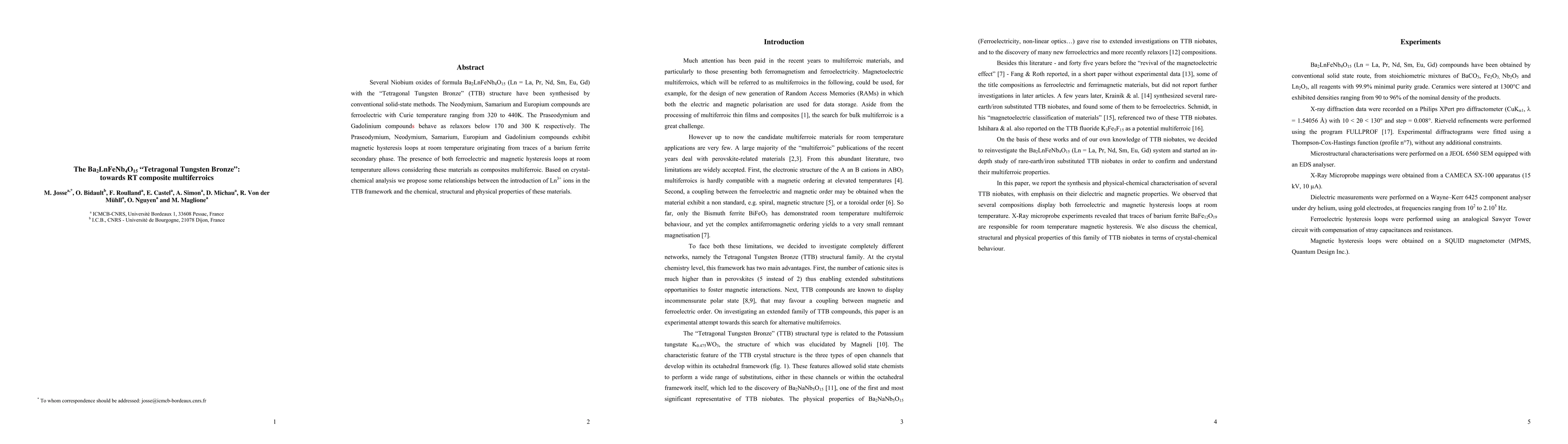 The research synthesized Ba2LnFeNb4O15 compounds (Ln = La, Pr, Nd, Sm, Eu, Gd) with Tetragonal Tungsten Bronze (TTB) structure using conventional solid-state methods.