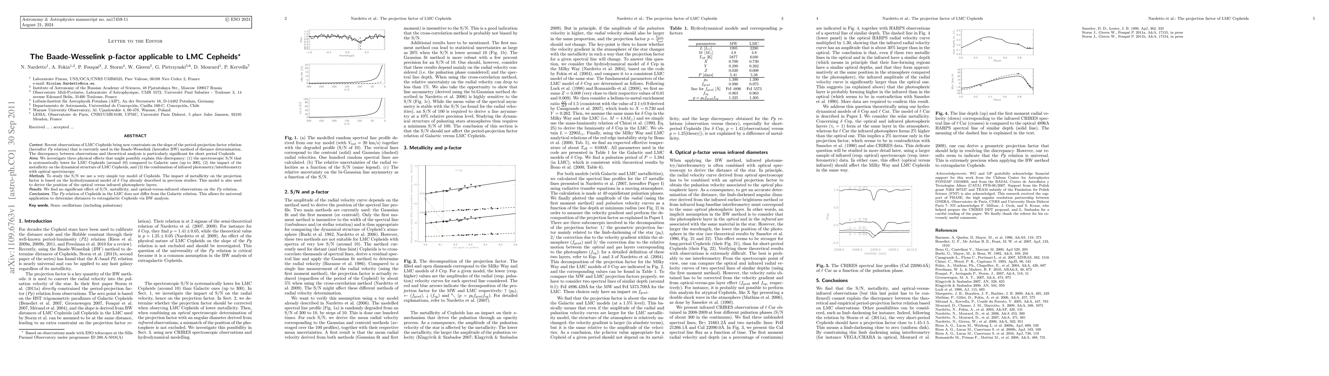 The paper investigates potential explanations for discrepancies in the period-projection factor relation for LMC Cepheids, considering factors like signal-to-noise ratio, metallicity, and optical-infrared observations. The study concludes that none of these factors significantly affect the Baade-Wesselink method, allowing its universal application for distance determination in extragalactic Cepheids.