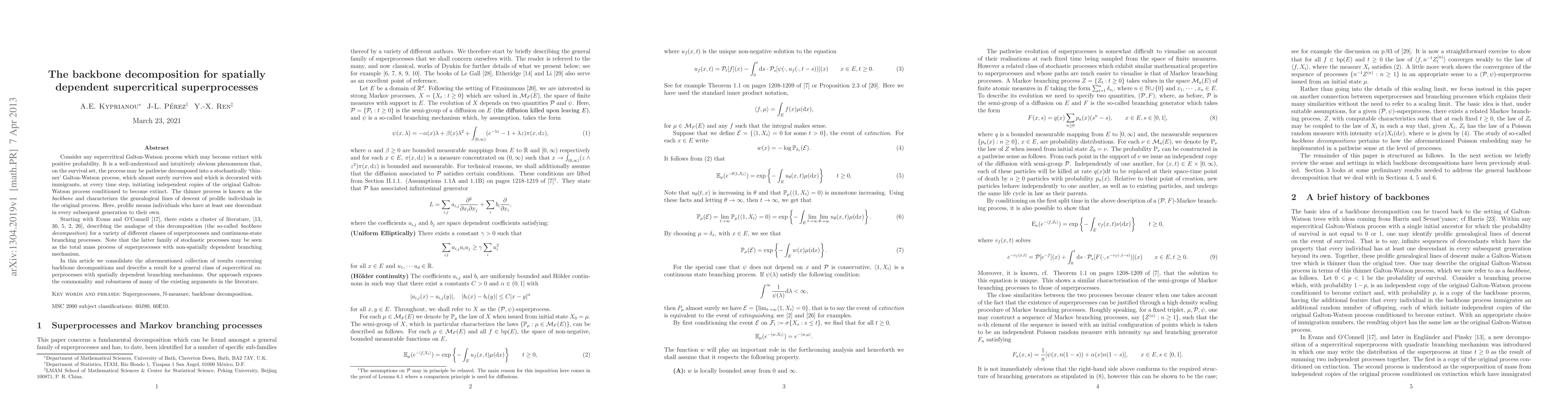 This paper consolidates results on backbone decompositions for supercritical superprocesses, focusing on those with spatially dependent branching mechanisms. It reveals the robustness of existing decomposition techniques and extends them to a broader class of processes.