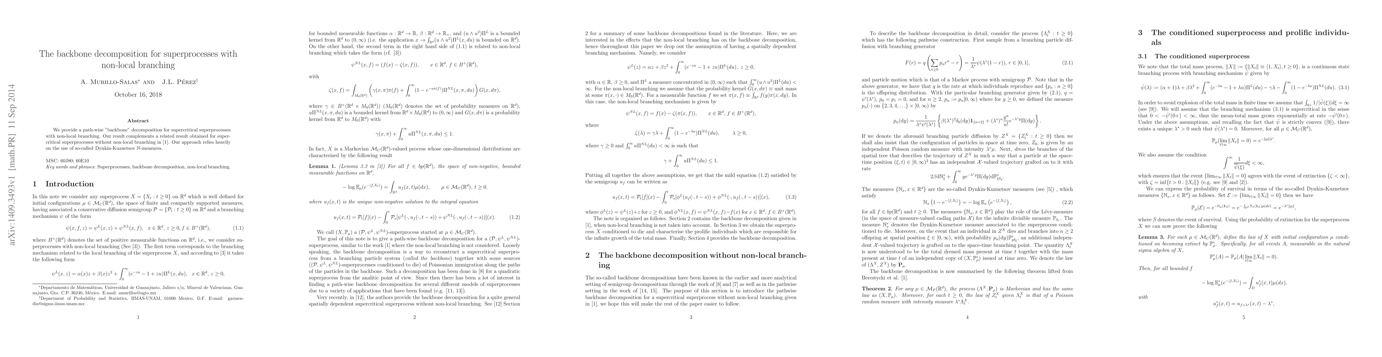 Summary: This paper presents a path-wise "backbone" decomposition for supercritical superprocesses featuring non-local branching, utilizing Dynkin-Kuznetsov N-measures, and extends previous results for processes without non-local branching.