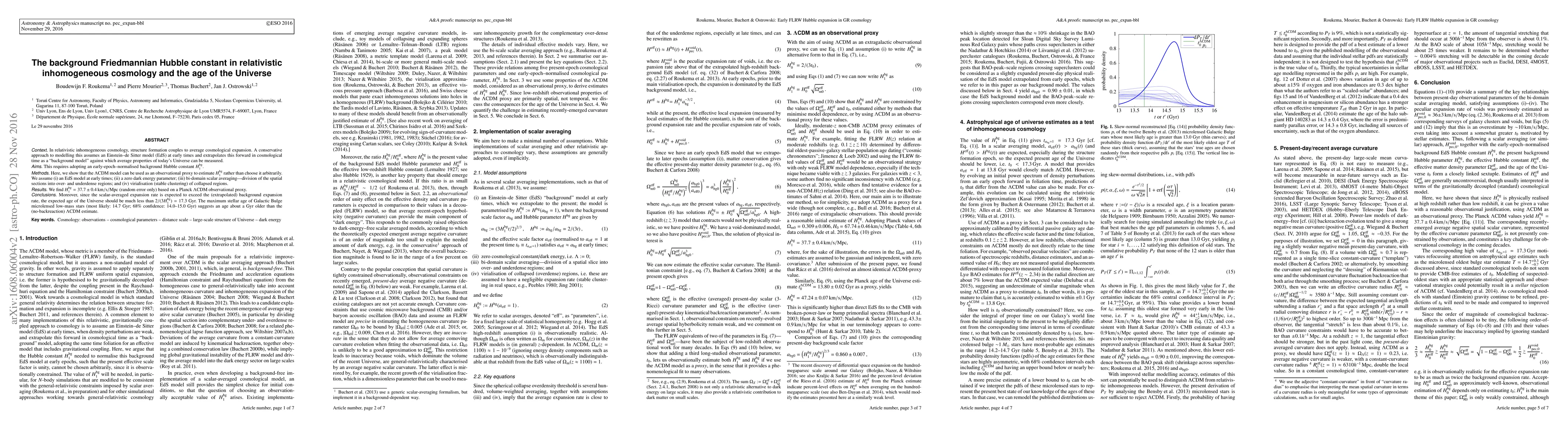 In relativistic inhomogeneous cosmology, structure formation couples to average cosmological expansion. A conservative approach to modelling this assumes an Einstein--de Sitter model (EdS) at early times and extrapolates this forward in cosmological time as a "background model" against which average properties of today's Universe can be measured. This requires adopting an early-epoch--normalised background Hubble constant $H_1^{bg}$. Here, we show that the $\Lambda$CDM model can be used as an observational proxy to estimate $H_1^{bg}$ rather than choose it arbitrarily. We assume (i) an EdS model at early times; (ii) a zero dark energy parameter; (iii) bi-domain scalar averaging---division of the spatial sections into over- and underdense regions; and (iv) virialisation (stable clustering) of collapsed regions. We find $H_1^{bg}= 37.7 \pm 0.4$ km/s/Mpc (random error only) based on a Planck $\Lambda$CDM observational proxy. Moreover, since the scalar-averaged expansion rate is expected to exceed the (extrapolated) background expansion rate, the expected age of the Universe should be much less than $2/(3 H_1^{bg}) = 17.3$ Gyr. The maximum stellar age of Galactic Bulge microlensed low-mass stars (most likely: 14.7 Gyr; 68\% confidence: 14.0--15.0 Gyr) suggests an age about a Gyr older than the (no-backreaction) $\Lambda$CDM estimate.