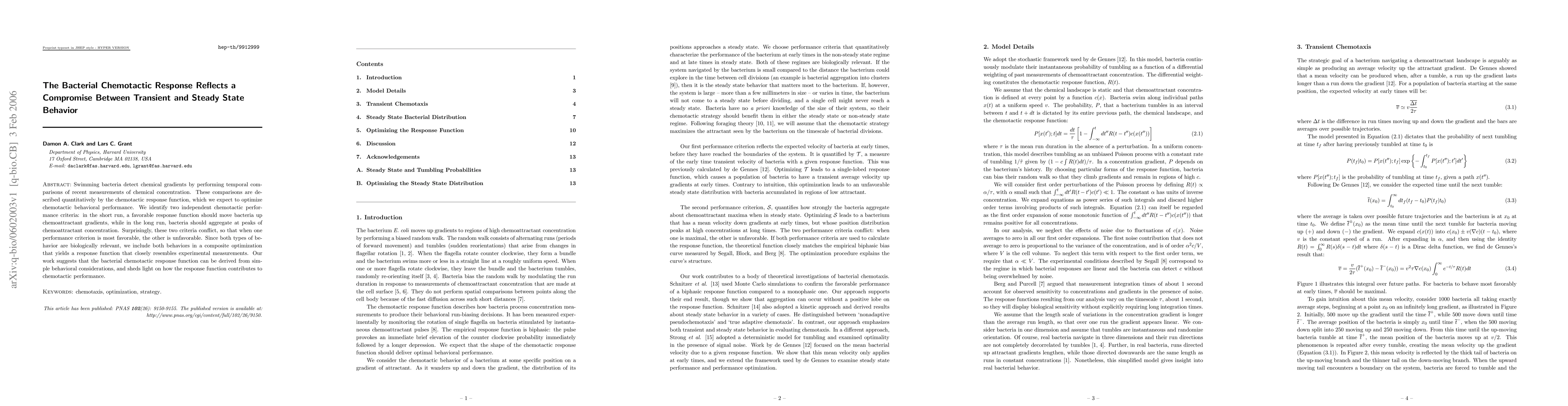 Swimming bacteria detect chemical gradients by performing temporal comparisons of recent measurements of chemical concentration. These comparisons are described quantitatively by the chemotactic response function, which we expect to optimize chemotactic behavioral performance. We identify two independent chemotactic performance criteria: in the short run, a favorable response function should move bacteria up chemoattractant gradients, while in the long run, bacteria should aggregate at peaks of chemoattractant concentration. Surprisingly, these two criteria conflict, so that when one performance criterion is most favorable, the other is unfavorable. Since both types of behavior are biologically relevant, we include both behaviors in a composite optimization that yields a response function that closely resembles experimental measurements. Our work suggests that the bacterial chemotactic response function can be derived from simple behavioral considerations, and sheds light on how the response function contributes to chemotactic performance.