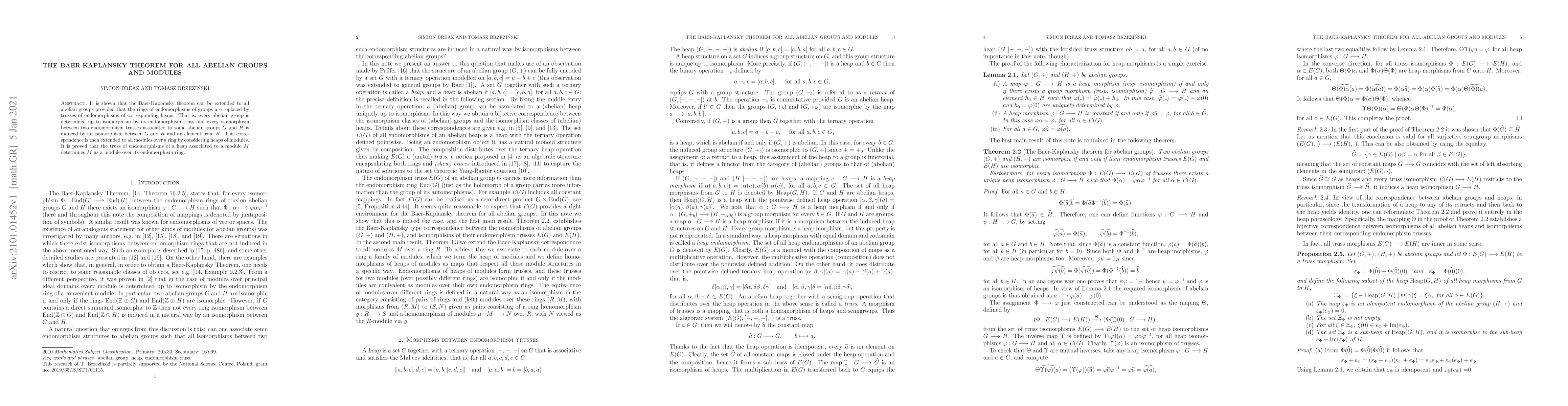 It is shown that the Baer-Kaplansky theorem can be extended to all abelian groups provided that the rings of endomorphisms of groups are replaced by trusses of endomorphisms of corresponding heaps. That is, every abelian group is determined up to isomorphism by its endomorphism truss and every isomorphism between two endomorphism trusses associated to some abelian groups $G$ and $H$ is induced by an isomorphism between $G$ and $H$ and an element from $H$. This correspondence is then extended to all modules over a ring by considering heaps of modules. It is proved that the truss of endomorphisms of a heap associated to a module $M$ determines $M$ as a module over its endomorphism ring.