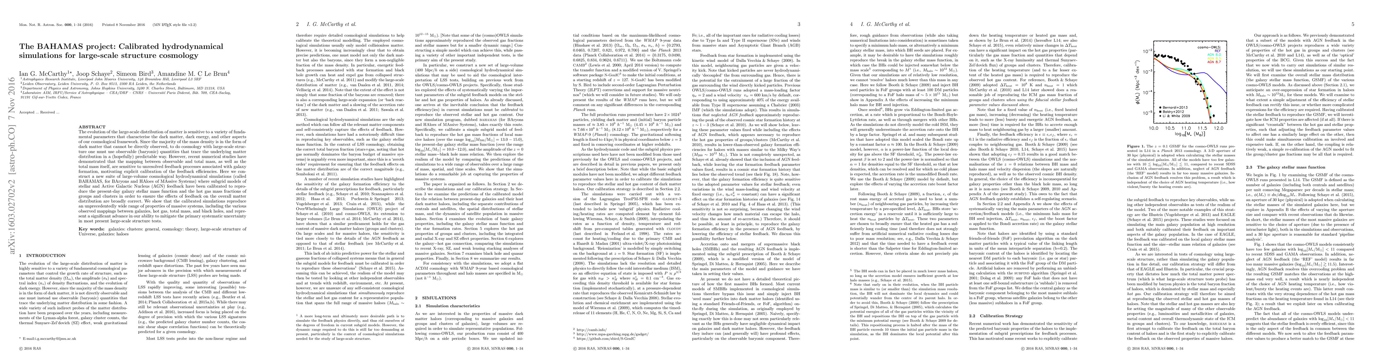 The BAHAMAS project presents a suite of large-volume cosmological hydrodynamical simulations calibrated to accurately reproduce the effects of stellar and AGN feedback on galaxy formation, thereby improving the modeling of the large-scale structure of the universe. These simulations aim to better represent the observable properties of massive systems, reducing systematic uncertainties in cosmological studies.
