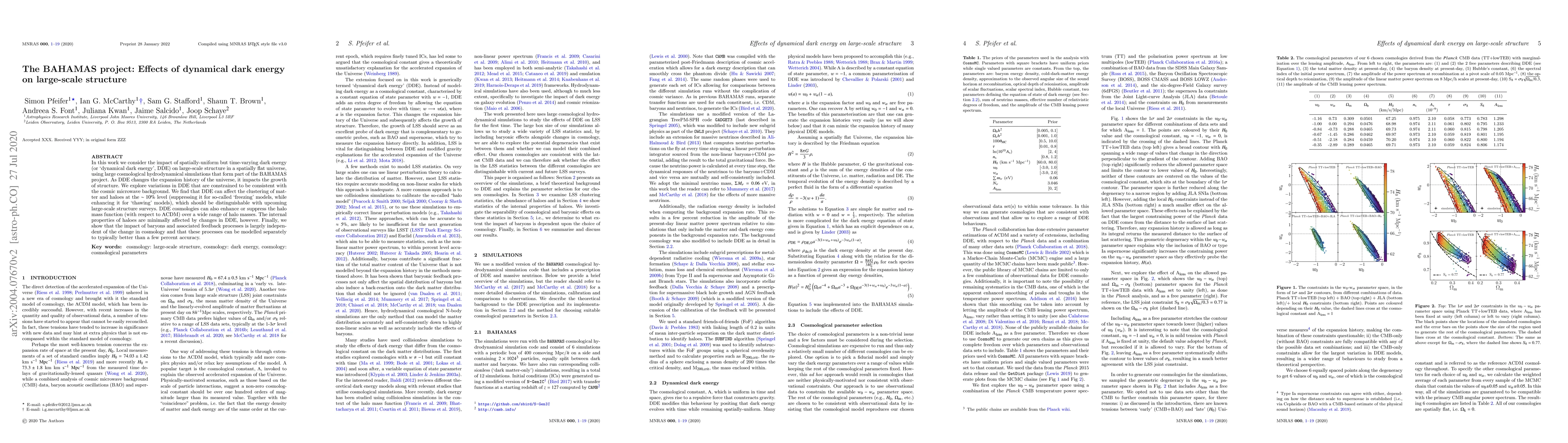 The BAHAMAS project investigates the influence of dynamical dark energy on large-scale structure, finding that it can alter matter and halo clustering by ~10%, while minimally affecting halo internal properties. The impact of baryonic feedback processes remains largely independent of the cosmological model.