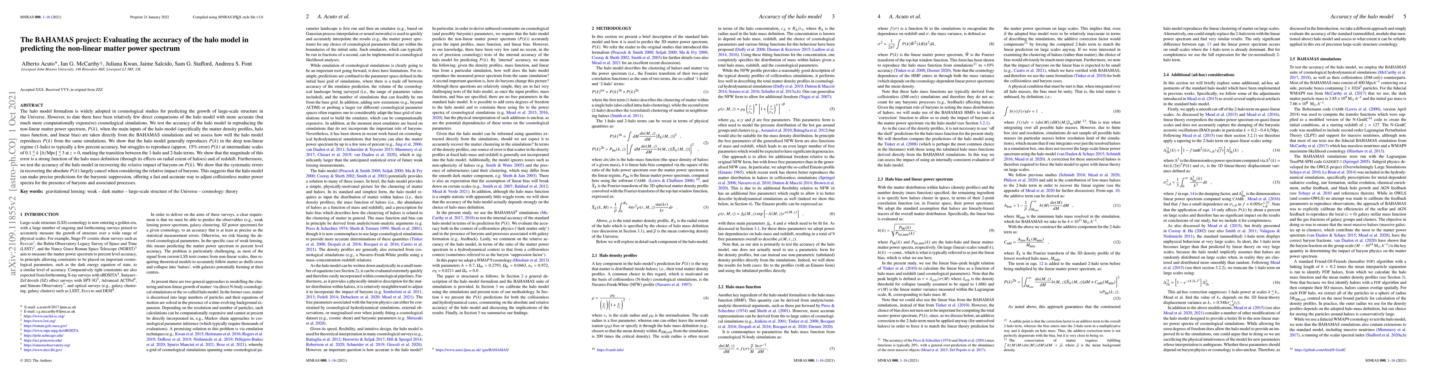 The BAHAMAS project evaluates the halo model's accuracy in predicting the non-linear matter power spectrum, finding it typically reproduces P(k) within a few percent in the deep non-linear regime, but shows a 15% error at intermediate scales. This error is influenced by halo mass definition and redshift, though the model can accurately predict the relative impact of baryons on P(k).