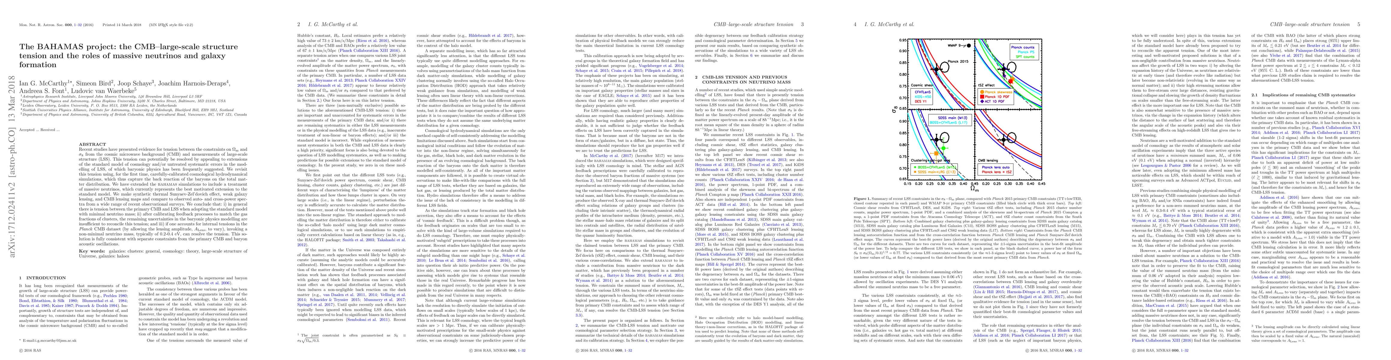 The BAHAMAS project investigates the tension between CMB and large-scale structure measurements, finding that while baryonic physics uncertainties are insufficient to resolve the discrepancy, a non-minimal neutrino mass of 0.2-0.4 eV can reconcile the tension when accounting for internal Planck CMB data inconsistencies.