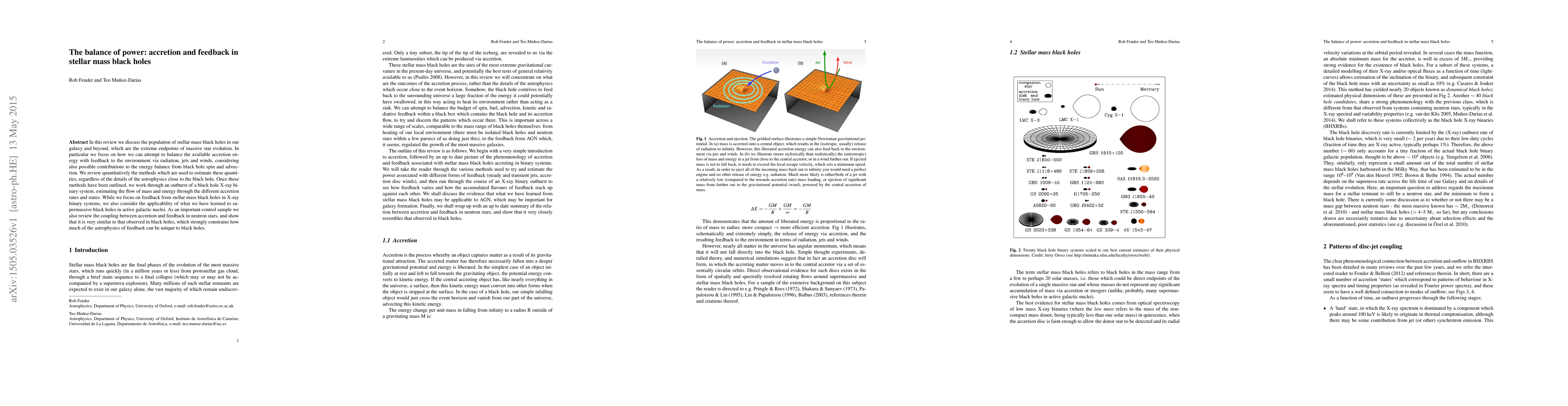 In this review we discuss the population of stellar-mass black holes in our galaxy and beyond, which are the extreme endpoints of massive star evolution. In particular we focus on how we can attempt to balance the available accretion energy with feedback to the environment via radiation, jets and winds, considering also possible contributions to the energy balance from black hole spin and advection. We review quantitatively the methods which are used to estimate these quantities, regardless of the details of the astrophysics close to the black hole. Once these methods have been outlined, we work through an outburst of a black hole X-ray binary system, estimating the flow of mass and energy through the different accretion rates and states. While we focus on feedback from stellar mass black holes in X-ray binary systems, we also consider the applicability of what we have learned to supermassive black holes in active galactic nuclei. As an important control sample we also review the coupling between accretion and feedback in neutron stars, and show that it is very similar to that observed in black holes, which strongly constrains how much of the astrophysics of feedback can be unique to black holes.