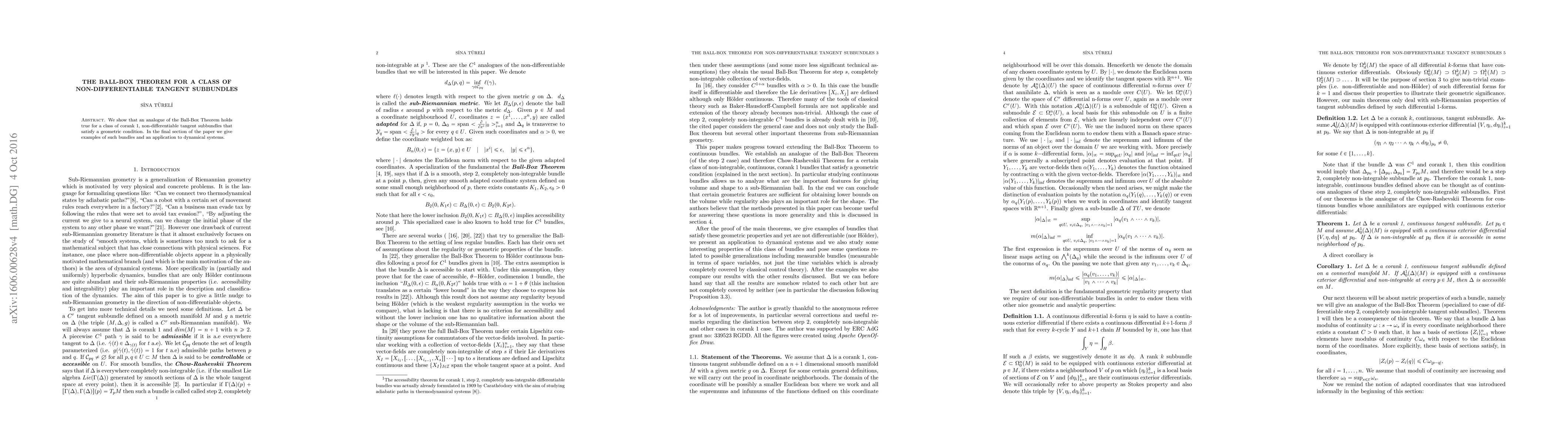 Summary: This paper demonstrates an analogue of the Ball-Box Theorem for non-differentiable tangent subbundles satisfying a specific geometric condition, and provides examples and applications to dynamical systems.