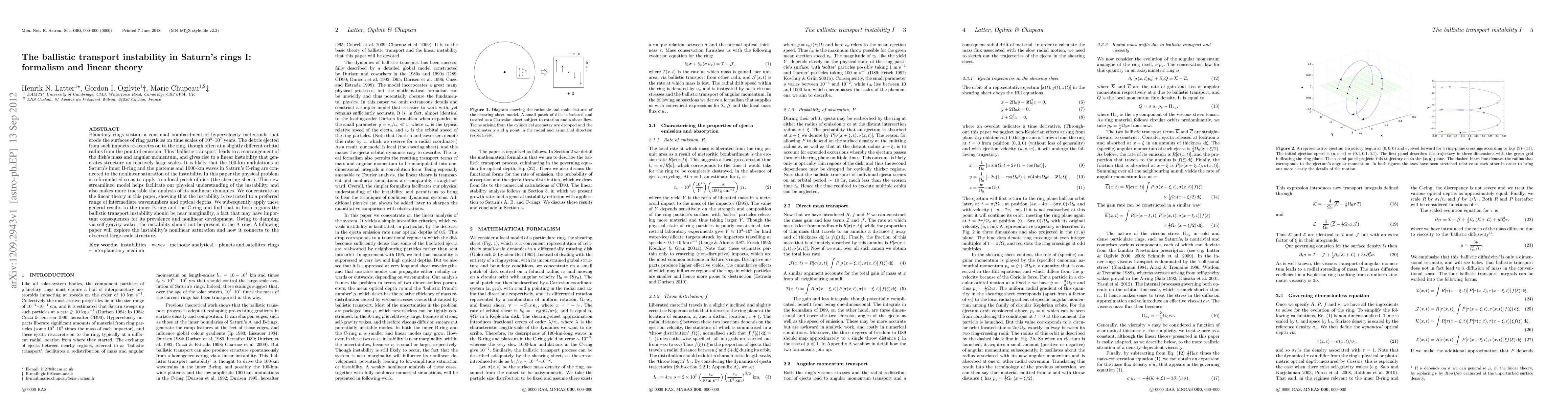 This paper reformulates the ballistic transport instability in Saturn's rings, focusing on linear theory to show that the instability occurs at intermediate wavenumbers and optical depths, likely explaining the large-scale undulations in Saturn's B-ring and C-ring. The instability is expected to be near marginality in these regions, while damping prevents it in the A-ring.