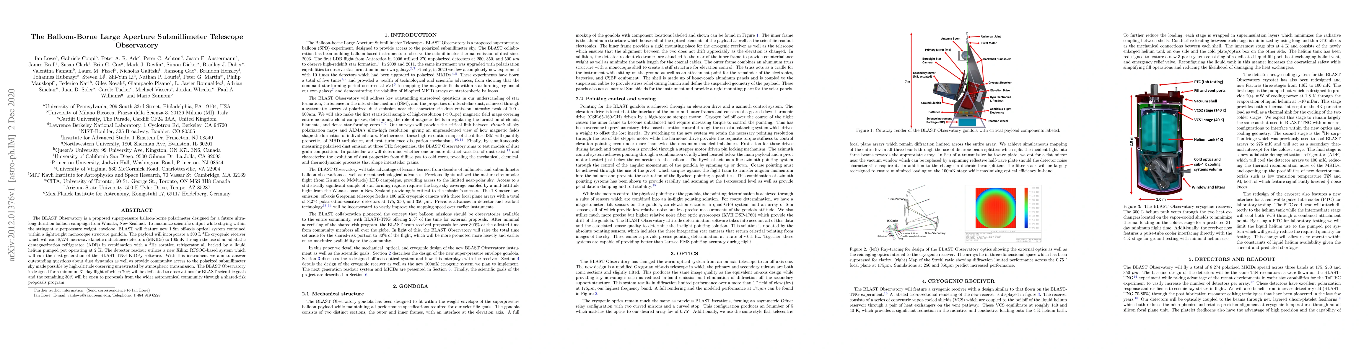The BLAST Observatory is a proposed superpressure balloon-borne polarimeter designed for a future ultra-long duration balloon campaign from Wanaka, New Zealand. To maximize scientific output while staying within the stringent superpressure weight envelope, BLAST will feature new 1.8m off-axis optical system contained within a lightweight monocoque structure gondola. The payload will incorporate a 300L $^4$He cryogenic receiver which will cool 8,274 microwave kinetic inductance detectors (MKIDs) to 100mK through the use of an adiabatic demagnetization refrigerator (ADR) in combination with a $^3$He sorption refrigerator all backed by a liquid helium pumped pot operating at 2K. The detector readout utilizes a new Xilinx RFSOC-based system which will run the next-generation of the BLAST-TNG KIDPy software. With this instrument we aim to answer outstanding questions about dust dynamics as well as provide community access to the polarized submillimeter sky made possible by high-altitude observing unrestricted by atmospheric transmission. The BLAST Observatory is designed for a minimum 31-day flight of which 70$\%$ will be dedicated to observations for BLAST scientific goals and the remaining 30$\%$ will be open to proposals from the wider astronomical community through a shared-risk proposals program.