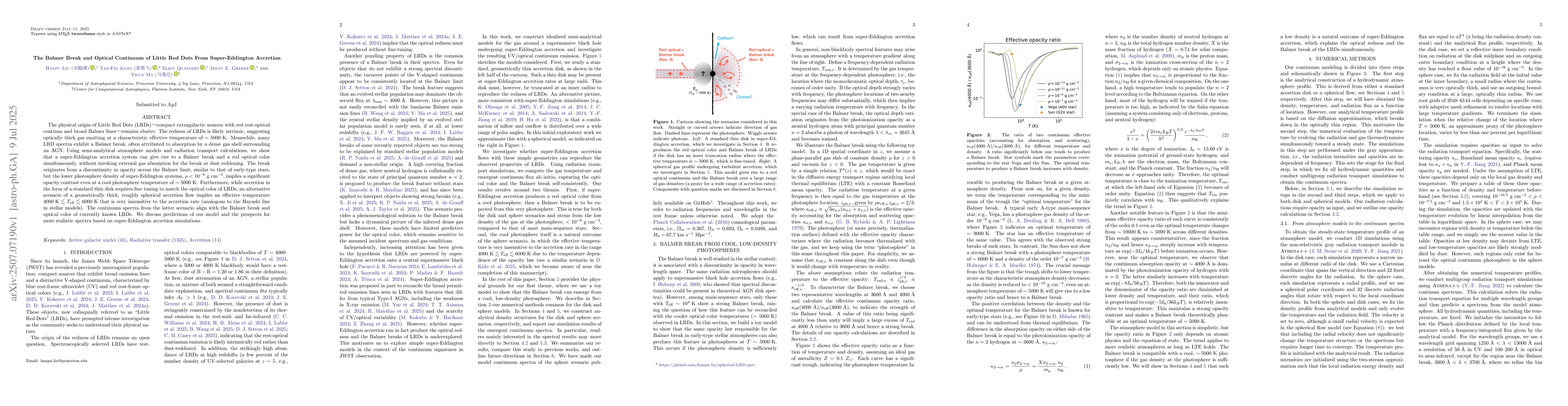 The physical origin of Little Red Dots (LRDs)--compact extragalactic sources with red rest-optical continua and broad Balmer lines--remains elusive. The redness of LRDs is likely intrinsic, suggesting optically thick gas emitting at a characteristic effective temperature of $\sim5000{\rm~K}$. Meanwhile, many LRD spectra exhibit a Balmer break, often attributed to absorption by a dense gas shell surrounding an AGN. Using semi-analytical atmosphere models and radiation transport calculations, we show that a super-Eddington accretion system can give rise to a Balmer break and a red optical color simultaneously, without invoking external gas absorption for the break or dust reddening. The break originates from a discontinuity in opacity across the Balmer limit, similar to that of early-type stars, but the lower photosphere density of super-Eddington systems, $\rho<10^{-9}{\rm~g~cm^{-3}}$, implies a significant opacity contrast even at a cool photosphere temperature of $\sim5000{\rm~K}$. Furthermore, while accretion in the form of a standard thin disk requires fine tuning to match the optical color of LRDs, an alternative scenario of a geometrically thick, roughly spherical accretion flow implies an effective temperature $4000{\rm~K}\lesssim T_{\rm eff}\lesssim6000{\rm~K}$ that is very insensitive to the accretion rate (analogous to the Hayashi line in stellar models). The continuum spectra from the latter scenario align with the Balmer break and optical color of currently known LRDs. We discuss predictions of our model and the prospects for more realistic spectra based on super-Eddington accretion simulations.