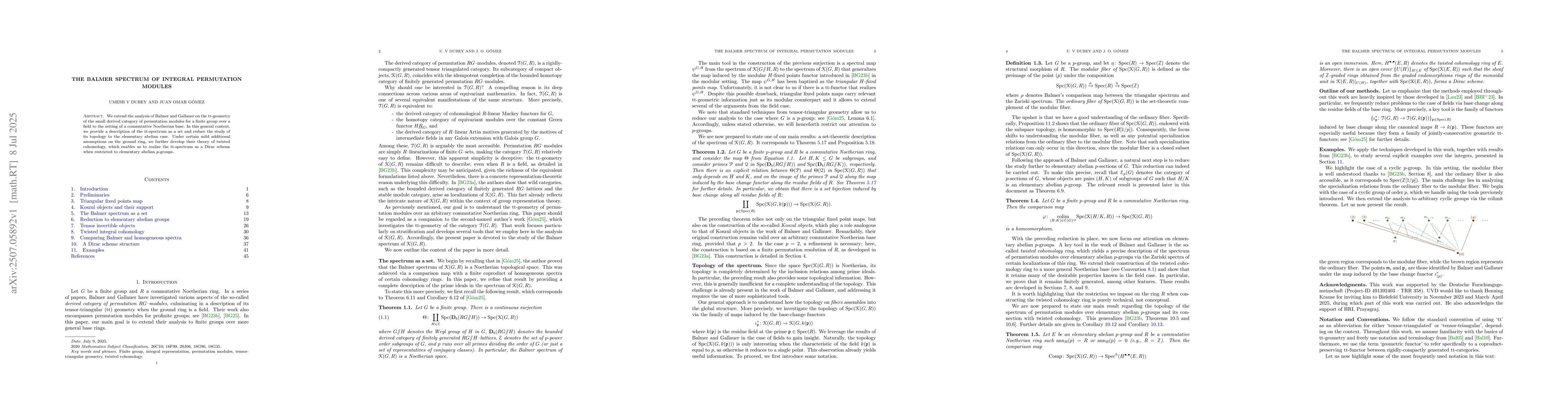 We extend the analysis of Balmer and Gallauer on the tt-geometry of the small derived category of permutation modules for a finite group over a field to the setting of a commutative Noetherian base. In this general context, we provide a description of the tt-spectrum as a set and reduce the study of its topology to the elementary abelian case. Under certain mild additional assumptions on the ground ring, we further develop their theory of twisted cohomology, which enables us to realize the tt-spectrum as a Dirac scheme when restricted to elementary abelian $p$-groups.