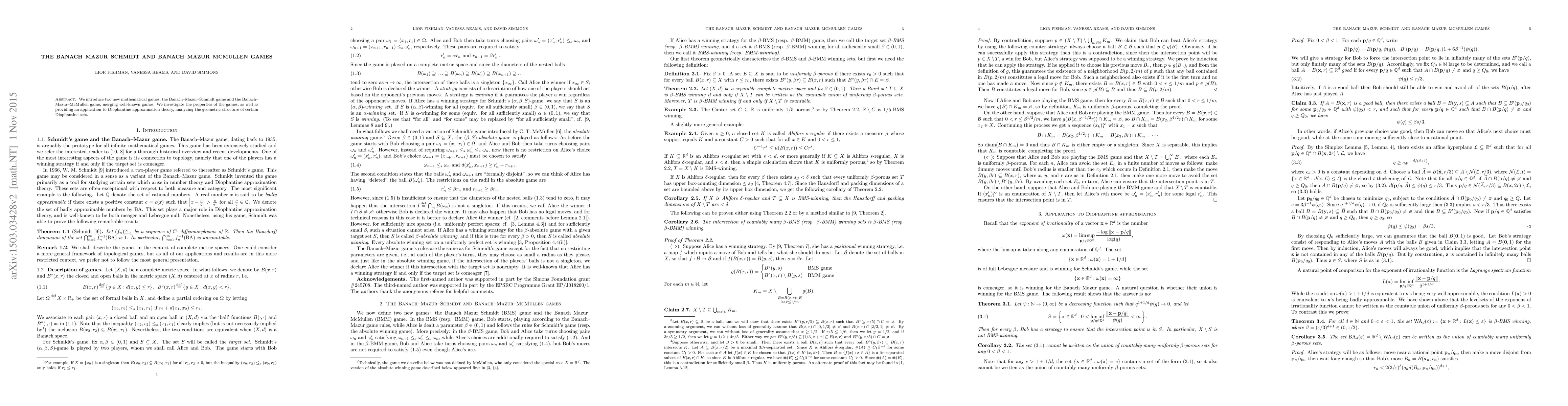 This paper introduces two new mathematical games, the Banach-Mazur-Schmidt game and the Banach-Mazur-McMullen game, and explores their properties. It also applies these games to Diophantine approximation theory to analyze the geometric structure of specific Diophantine sets.