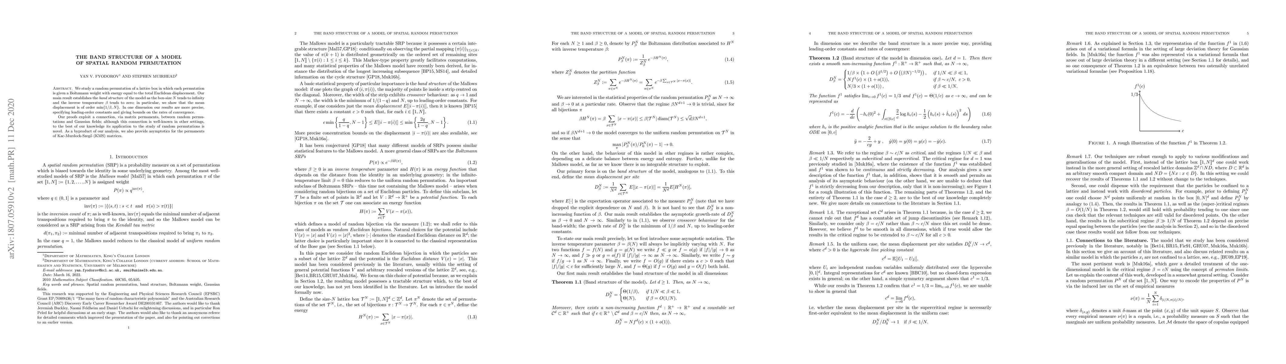 We study a random permutation of a lattice box in which each permutation is given a Boltzmann weight with energy equal to the total Euclidean displacement. Our main result establishes the band structure of the model as the box-size $N$ tends to infinity and the inverse temperature~$\beta$ tends to zero; in particular, we show that the mean displacement is of order $\min \{ 1/\beta, N\}$. In one dimension our results are more precise, specifying leading-order constants and giving bounds on the rates of convergence. Our proofs exploit a connection, via matrix permanents, between random permutations and Gaussian fields; although this connection is well-known in other settings, to the best of our knowledge its application to the study of random permutations is novel. As a byproduct of our analysis, we also provide asymptotics for the permanents of Kac-Murdock-Szego (KMS) matrices.