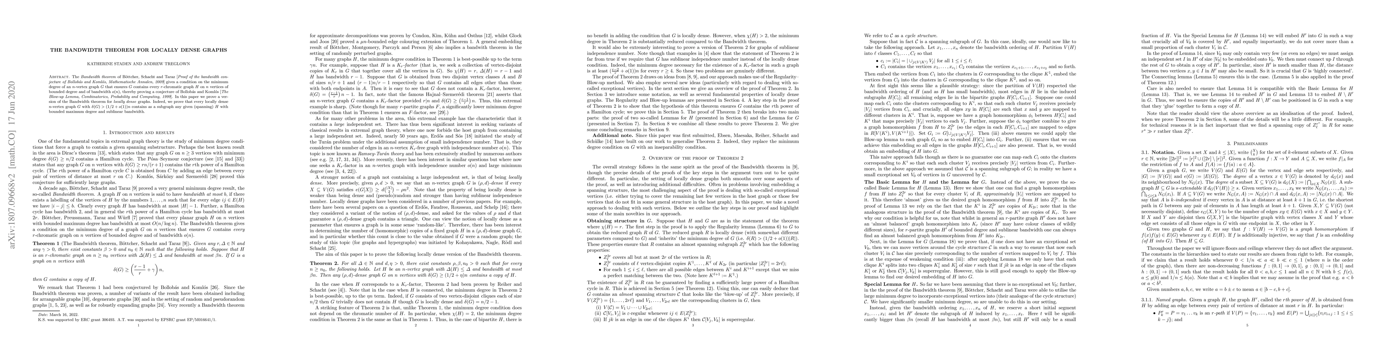 This research extends the Bandwidth theorem to locally dense graphs, providing a condition on the minimum degree of an n-vertex graph that ensures it contains every r-chromatic graph on n vertices of bounded degree and sublinear bandwidth, which is significant for advancing graph theory and combinatorics.