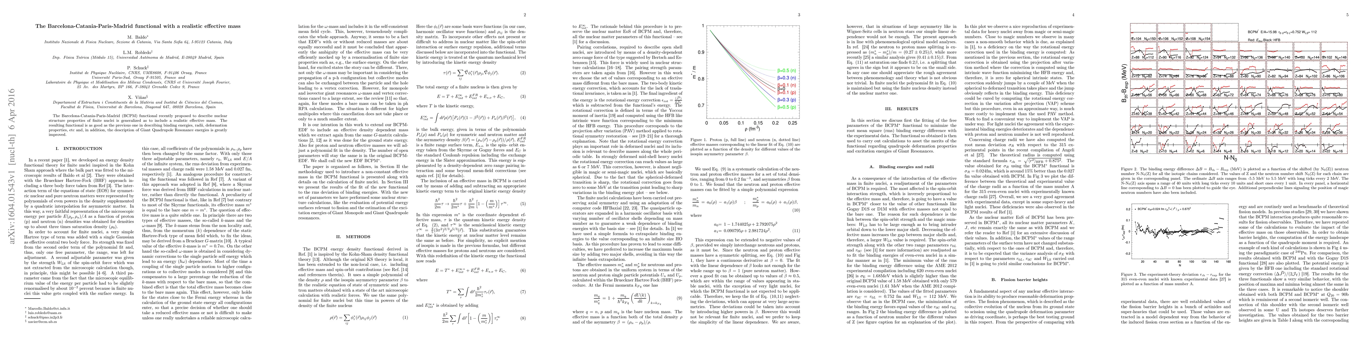 The Barcelona-Catania-Paris-Madrid (BCPM) functional recently proposed to describe nuclear structure properties of finite nuclei is generalized as to include a realistic effective mass. The resulting functional is as good as the previous one in describing binding energies, radii, deformation properties, etc and, in addition, the description of Giant Quadrupole Resonance energies is greatly improved.