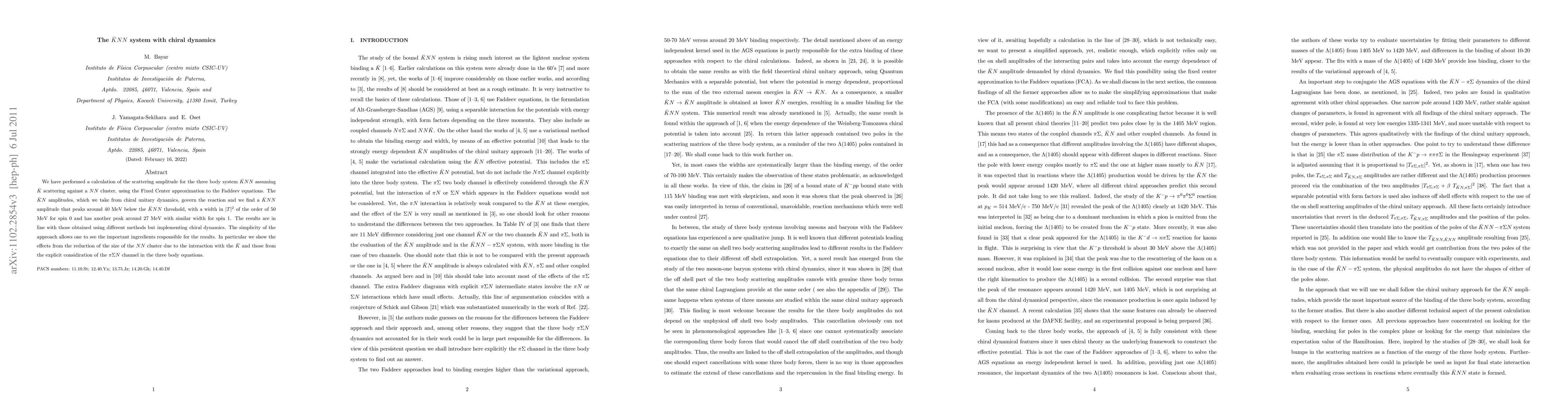 This paper investigates the $\bar{K}NN$ scattering system using chiral dynamics and the Fixed Center approximation to the Faddeev equations, finding a peak in the $\bar{K}NN$ amplitude around 40 MeV below threshold, with additional peaks for different spin configurations. The results align with other methods employing chiral dynamics, highlighting the effects of $NN$ cluster size reduction and $\pi \Sigma N$ channel interactions.