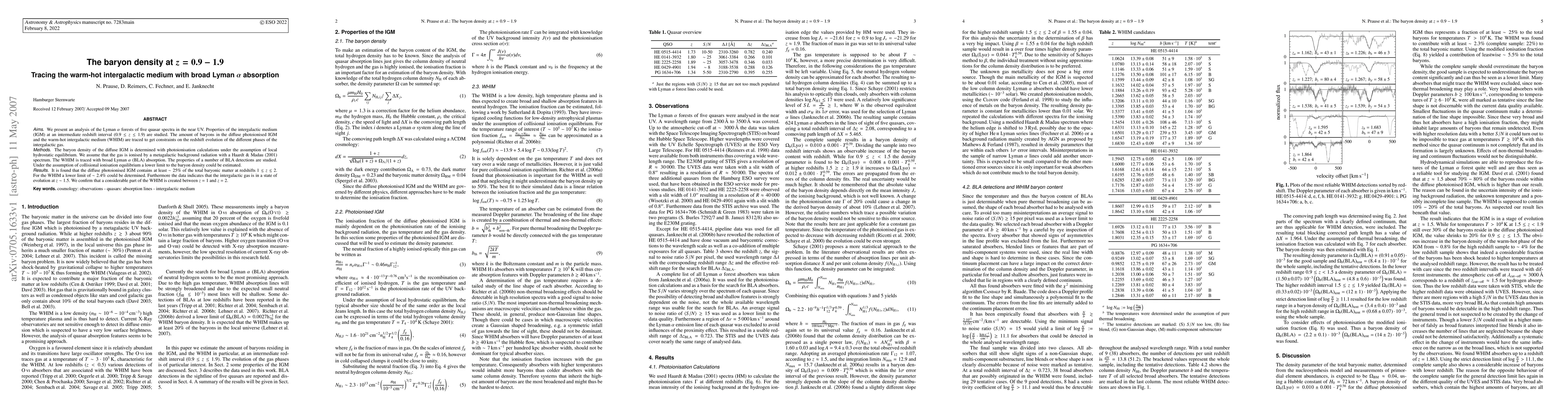 This paper analyzes Lyman alpha forests in quasar spectra to determine the baryon density in the diffuse photoionised intergalactic medium and the warm-hot intergalactic medium (WHIM) at redshifts 0.9 to 1.9. It finds that at least 25% of baryonic matter is in the diffuse IGM, and a lower limit of 2.4% is in the WHIM, suggesting significant evolution of the intergalactic gas at z=1.5.