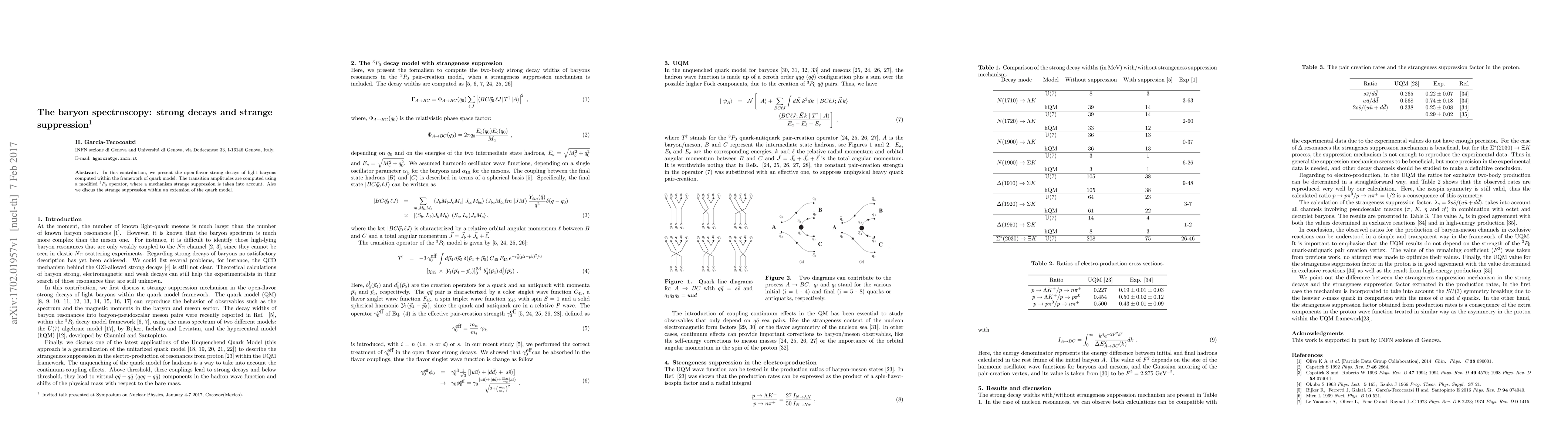 In this contribution, we present the open-flavor strong decays of light baryons computed within the framework of quark model. The transition amplitudes are computed using a modified $^3P_0$ operator, where a mechanism strange suppression is taken into account. Also we discus the strange suppression within an extension of the quark model.