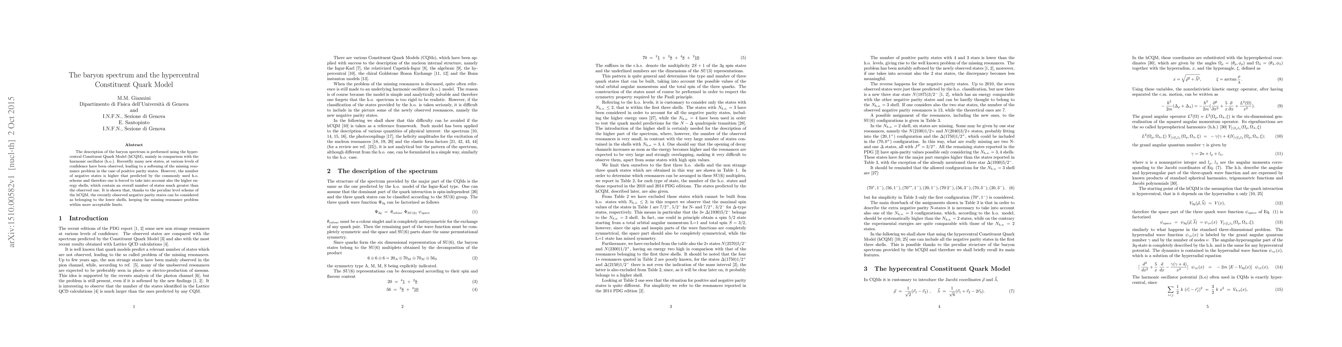 The description of the baryon spectrum is performed using the hypercentral Consituent Quark Model (hCQM), mainly in comparison with the harmonic oscillator (h.o.). Recentlly many new states, at various levels of confidence have been observed, leading to a softening of the missing resonance problem in the case of positive parity states. However, the number of negative states is higher that predicted by the commonly used h.o. scheme and therefore one is forced to take into account also the higher energy shells, which contain an overall number of states much greater than the observed one. It is shown that, thanks to the peculiar level scheme of the hCQM, the recently observed negative parity states can be considered as belonging to the lower shells, keeping the missing resonance problem within more acceptable limits.