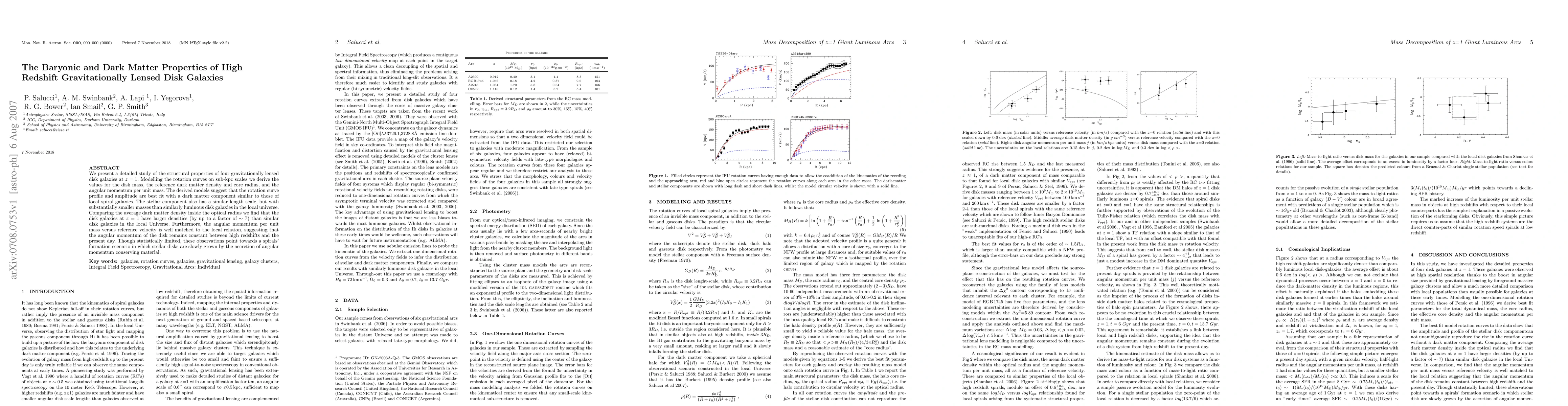 We present a detailed study of the structural properties of four gravitationally lensed disk galaxies at z=1. Modelling the rotation curves on sub-kpc scales we derive the values for the disk mass, the reference dark matter density and core radius, and the angular momentum per unit mass. The derived models suggest that the rotation curve profile and amplitude are best fit with a dark matter component similar to those of local spiral galaxies. The stellar component also has a similar length scale, but with substantially smaller masses than similarly luminous disk galaxies in the local universe. Comparing the average dark matter density inside the optical radius we find that the disk galaxies at z=1 have larger densities (by up to a factor of 7) than similar disk galaxies in the local Universe. Furthermore, the angular momentum per unit mass versus reference velocity is well matched to the local relation, suggesting that the angular momentum of the disk remains constant between high redshifts and the present day. Though statistically limited, these observations point towards a spirals' formation scenario in which stellar disks are slowly grown by the accretion of angular momentum conserving material.