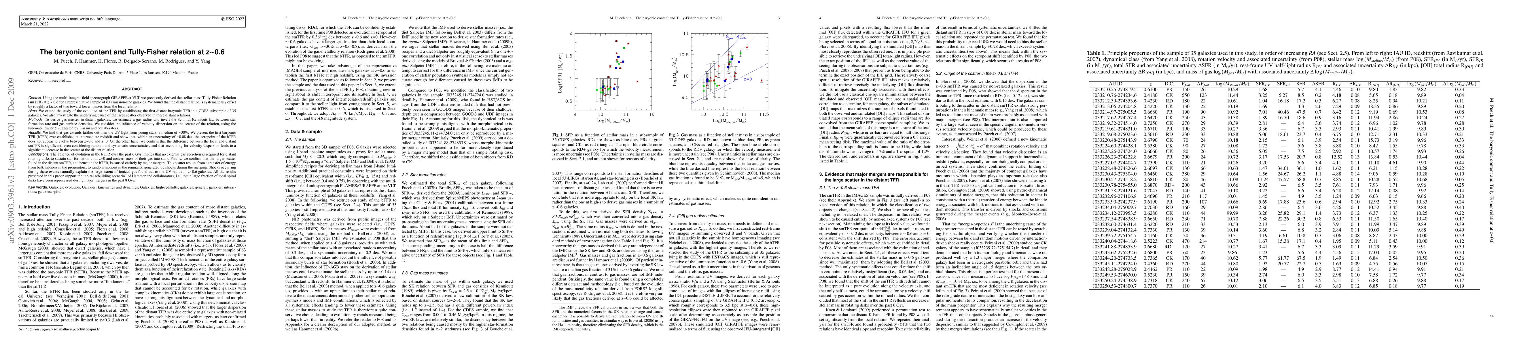 [abr.] Using the multi-integral-field spectrograph GIRAFFE at VLT, we previsouly derived the stellar-mass Tully-Fisher Relation (smTFR) at z~0.6, and found that the distant relation is systematically offset by roughly a factor of two toward lower masses. We extend the study of the evolution of the TFR by establishing the first distant baryonic TFR. To derive gas masses in distant galaxies, we estimate a gas radius and invert the Schmidt-Kennicutt law between star formation rate and gas surface densities. We find that gas extends farther out than the UV light from young stars, a median of ~30%. We present the first baryonic TFR (bTFR) ever established at intermediate redshift and show that, within an uncertainty of +/-0.08 dex, the zeropoint of the bTFR does not appear to evolve between z~0.6 and z=0. The absence of evolution in the bTFR over the past 6 Gyr implies that no external gas accretion is required for distant rotating disks to sustain star formation until z=0 and convert most of their gas into stars. Finally, we confirm that the larger scatter found in the distant smTFR, and hence in the bTFR, is caused entirely by major mergers. This scatter results from a transfer of energy from bulk motions in the progenitors, to random motions in the remnants, generated by shocks during the merging. Shocks occurring during these events naturally explain the large extent of ionized gas found out to the UV radius in z~0.6 galaxies. All the results presented in this paper support the ``spiral rebuilding scenario'' of Hammer and collaborators, i.e., that a large fraction of local spiral disks have been reprocessed during major mergers in the past 8 Gyr.