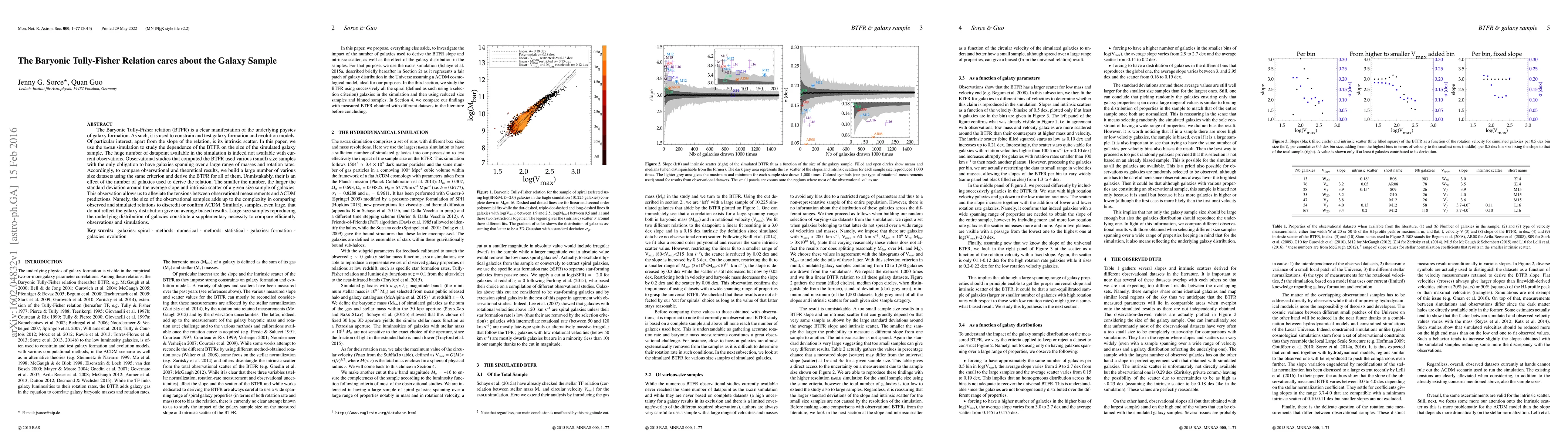 The Baryonic Tully-Fisher relation (BTFR) is a clear manifestation of the underlying physics of galaxy formation. As such, it is used to constrain and test galaxy formation and evolution models. Of particular interest, apart from the slope of the relation, is its intrinsic scatter. In this paper, we use the EAGLE simulation to study the dependence of the BTFR on the size of the simulated galaxy sample. The huge number of datapoint available in the simulation is indeed not available with current observations. Observational studies that computed the BTFR used various (small) size samples with the only obligation to have galaxies spanning over a large range of masses and rotation rates. Accordingly, to compare observational and theoretical results, we build a large number of various size datasets using the same criterion and derive the BTFR for all of them. Unmistakably, their is an effect of the number of galaxies used to derive the relation. The smaller the number, the larger the standard deviation around the average slope and intrinsic scatter of a given size sample of galaxies. This observation allows us to alleviate the tensions between observational measurements and LCDM predictions. Namely, the size of the observational samples adds up to the complexity in comparing observed and simulated relations to discredit or confirm LCDM. Similarly, samples, even large, that do not reflect the galaxy distribution give on average biased results. Large size samples reproducing the underlying distribution of galaxies constitute a supplementary necessity to compare efficiently observations and simulations.
